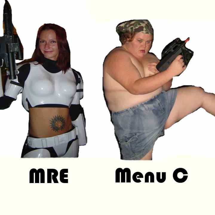 ahh - the much sought after FemTrooper of Geekdom.Big Galloot wrote:...The Menu C's come from a different planet nutritionally, 200 - 300 calories of entree and 1,000 calories of junk food.