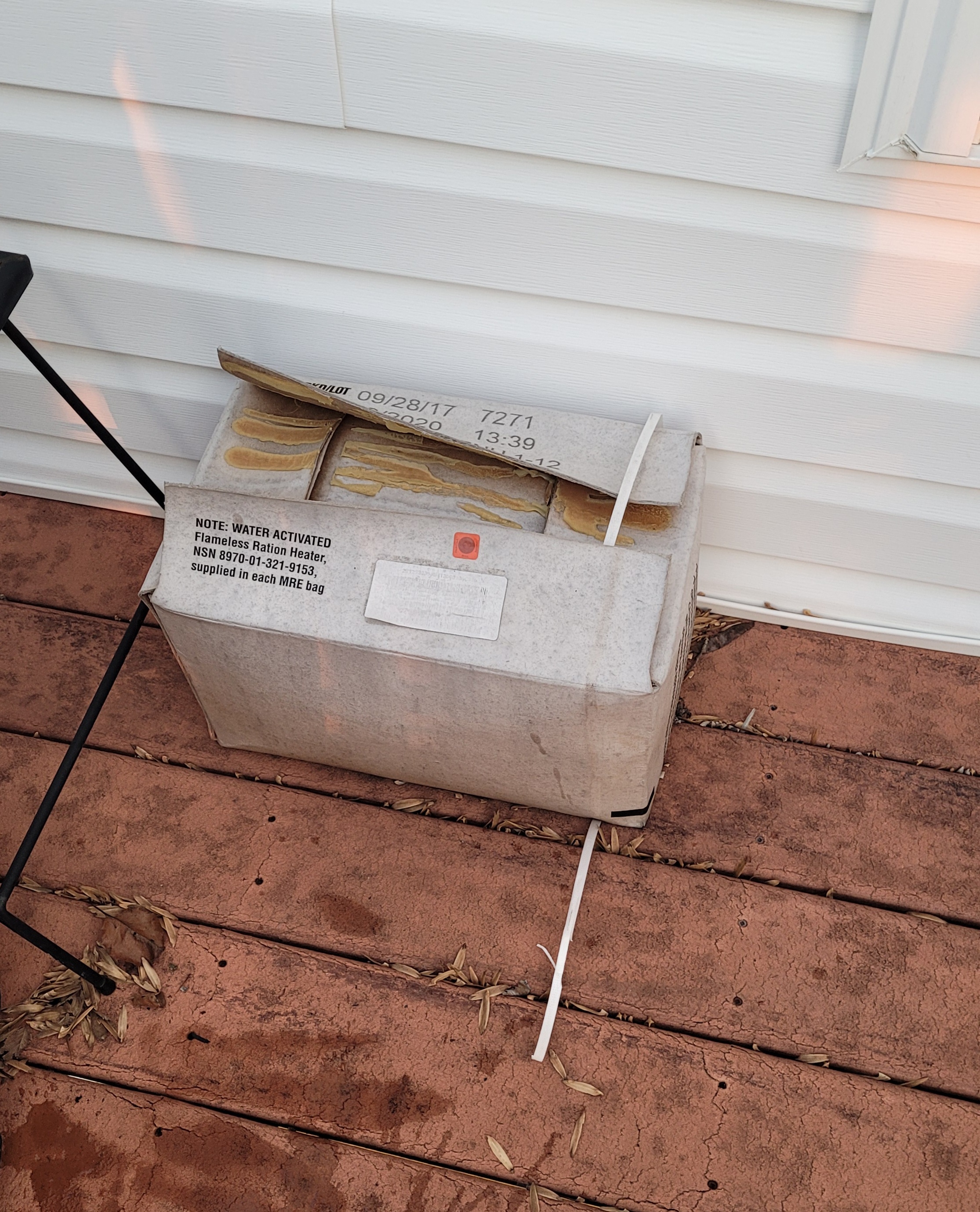 This Friday will be the one year mark for my experiment. This case sat outside for an entire year through rain, snow, freezing cold and blazing hot temperatures. I will open the case this weekend. I have taken the "control" MRE's out of the freezer and put them in the fridge to thaw. Hopefully one or two or more will have survived🤞.