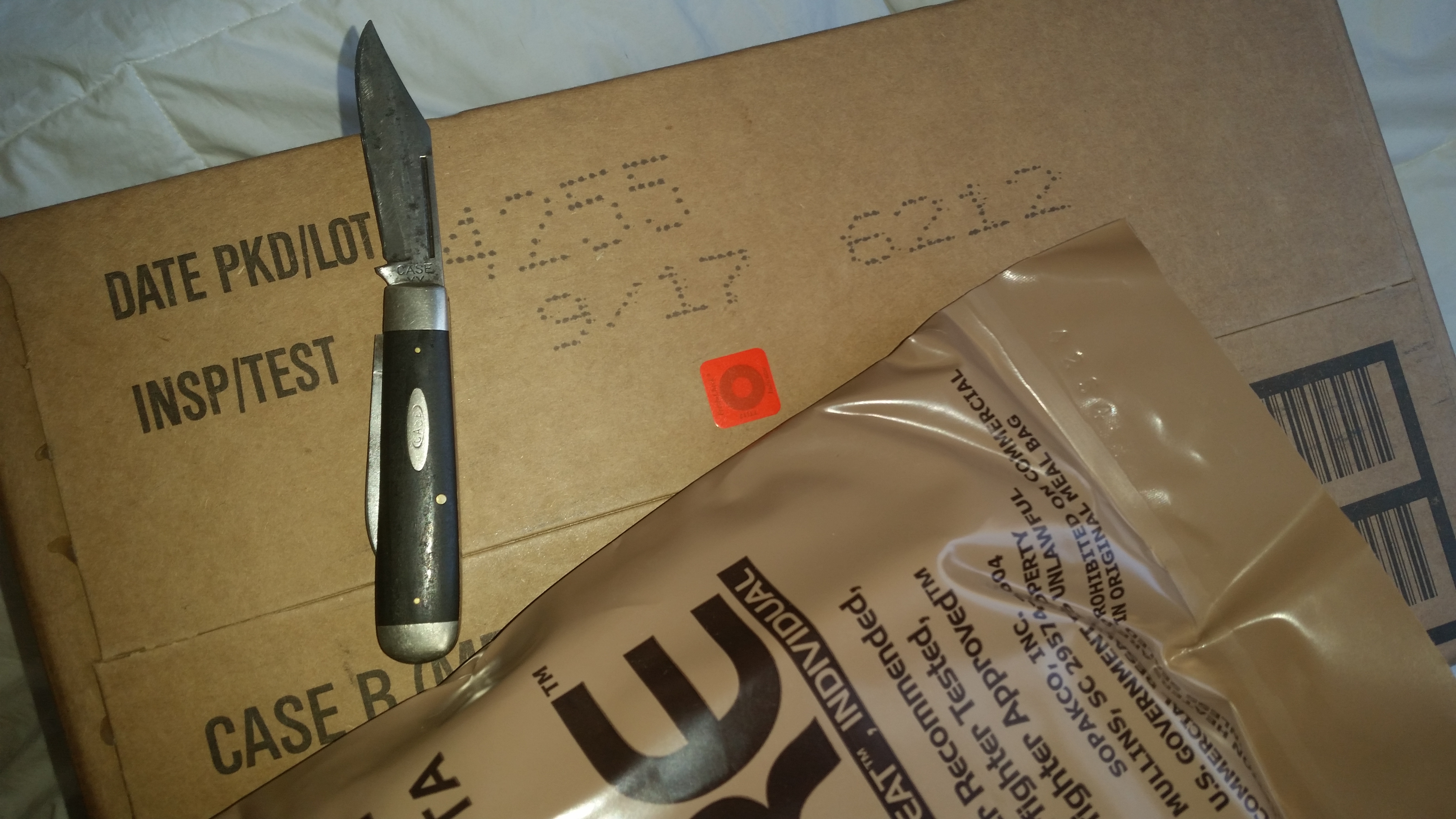 Thanks dude, I bought them for my young nephews to taste. A few months ago I was watching one of Gundogs reviews when they came by for a visit. They were really interested and wanted to try the "army food" So I bought two single MREs but they turned out to be from 2007 and not in good shape, like they had been stored poorly. The kids still enjoyed opening them and tasting some of it it and every time they have come over they ask when I will get more. They just arrived! While I was typing this THEY ARRIVED! They look great, The case is in perfect condition and the orange indicator is good, I took one out and it has a date code of 4254. I'm as giddy as a schoolgirl. When my nephews come over this weekend, maybe we'll do a review.