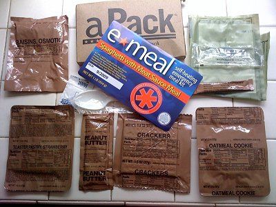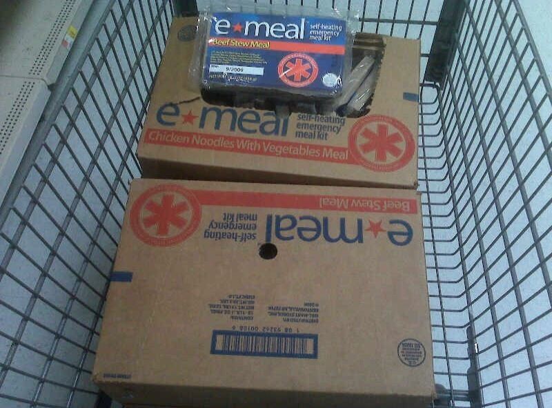 that some Wal-marts in Florida have those "E-Meal" civilian MREs that are made by Ameriqual. Supposedly, they're only $2 each. Check out the original thread above and the pics from that thread below.