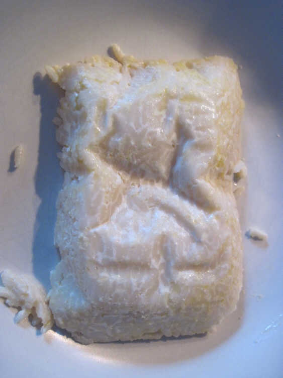 So e.g. the rice out of a FRH can look like this: still "solid" and "glued" together from/with that white "sauce".