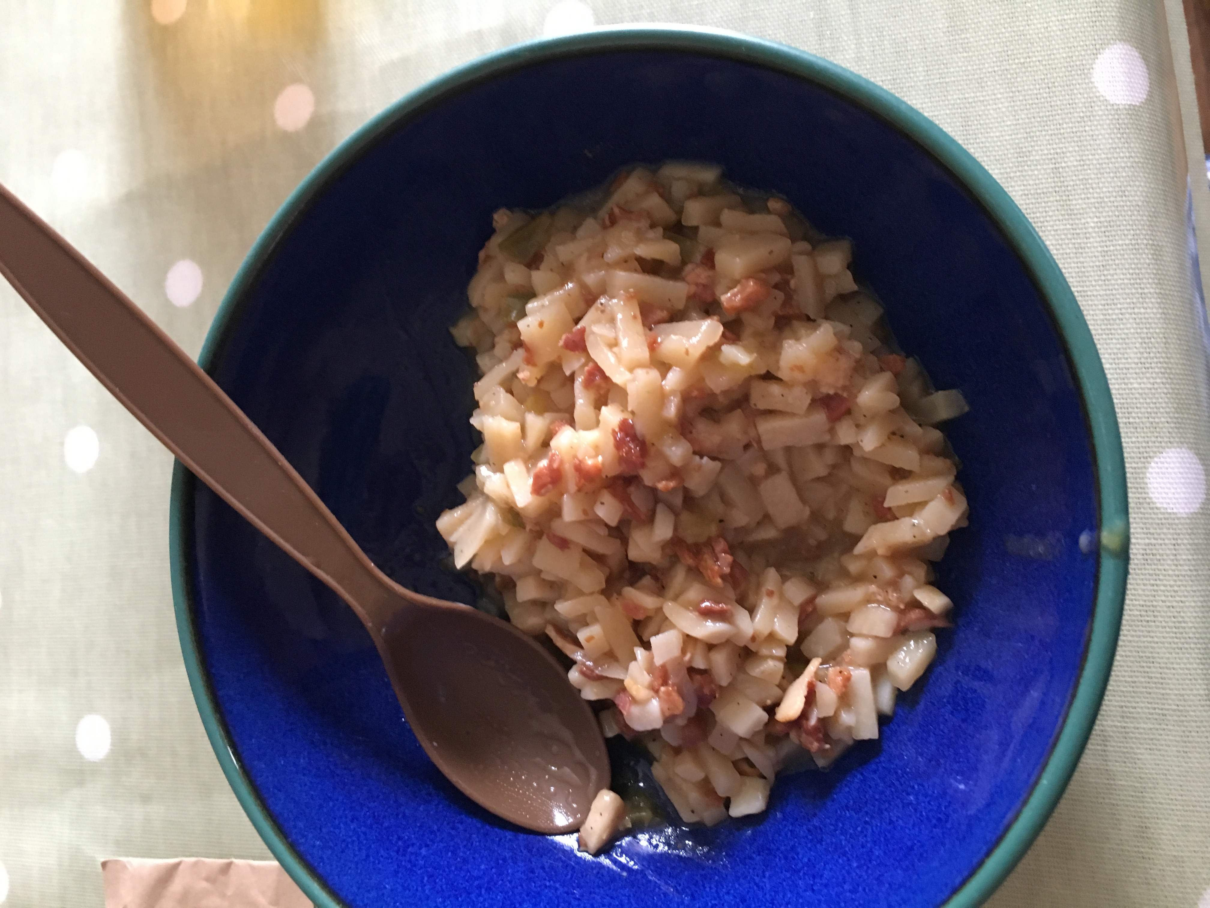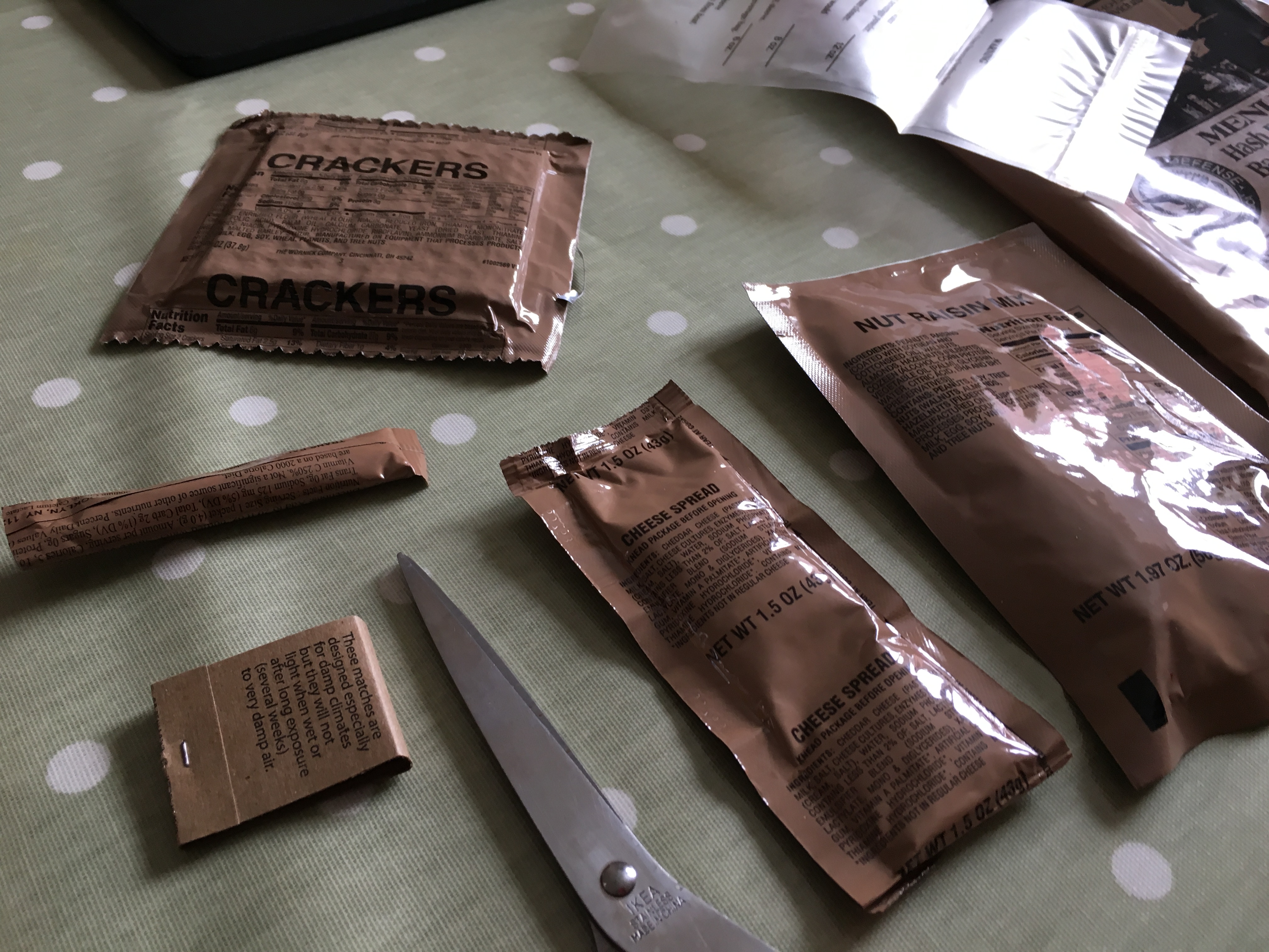 Wow. What a meal. The hash browns were delicious - strips of potatoes in a light salty gravy, with lots of bacon thrown in too. The orange drink was nice too, as were the crackers with cheese spread. It was my first time trying these, and they kinda tasted like cheetos! There was some delicious freezedried granola from mountain house and some nut raisin mix too. The flavour was great, but it left me feeling itchy with a swollen throat. Any one know why? I don't react normally to nuts but I do have an apple allergy. All in all, this meal was great, and I would wholeheartedly recommend it to anyone searching for a breakfast meal.