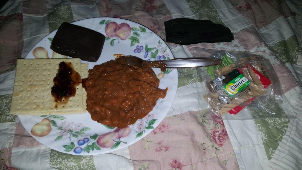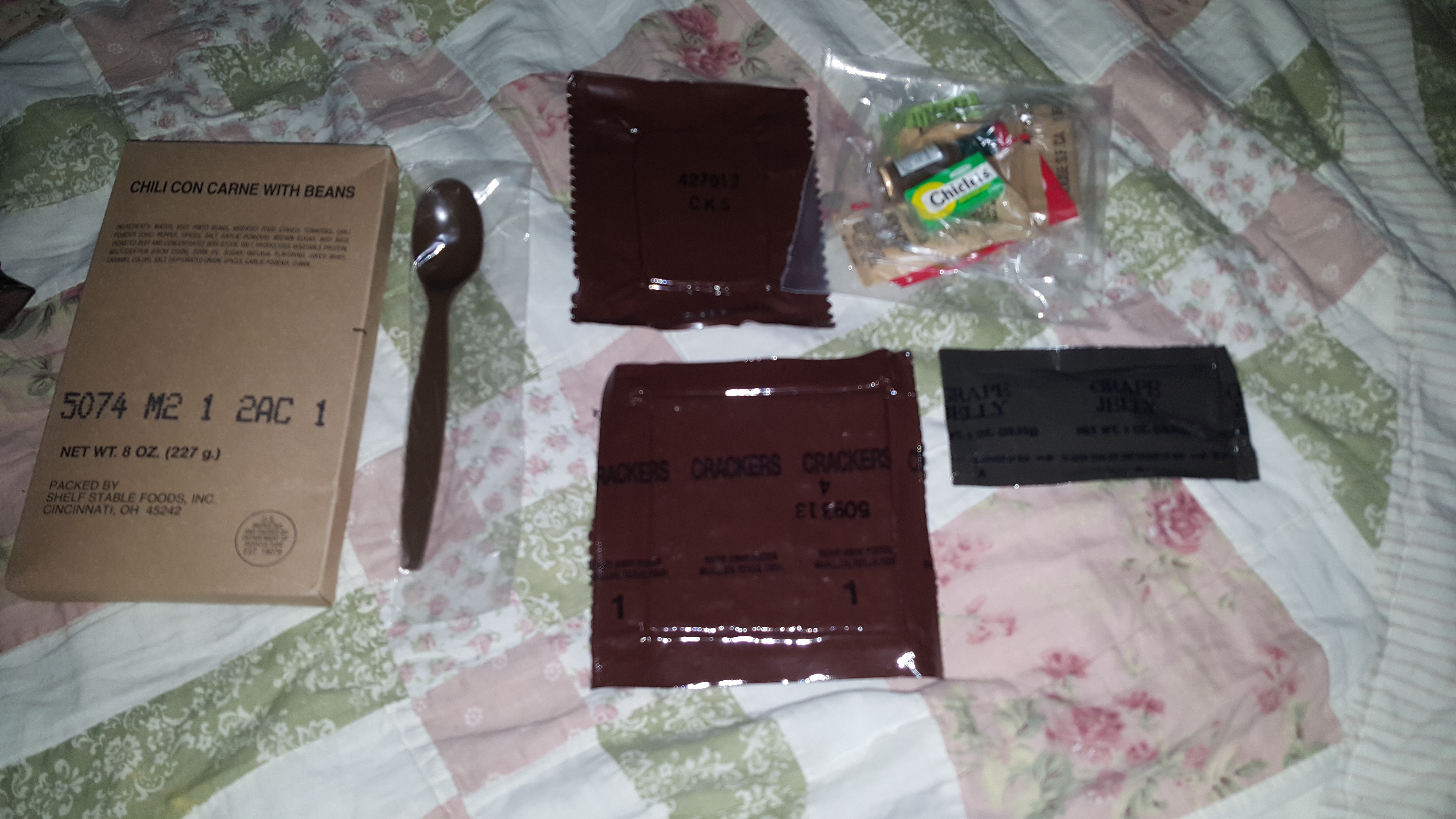 I'll just preface this by saying that everything was still good. You heard it right, a 22 year old MRE (at the time of writing) still managed to taste good. The chili was akin to a current production Chili With Beans MRE. Great texture and reasonably flavorful. The crackers with grape jelly were also amazing. The chocolate covered cookie was amazing as always. It's a real shame they no longer make these cookies. Someone out there has to be producing something at least close to them. I may follow up with the coffee at a better time, but I'm going to take a wild guess and say the coffee is probably dry molded.