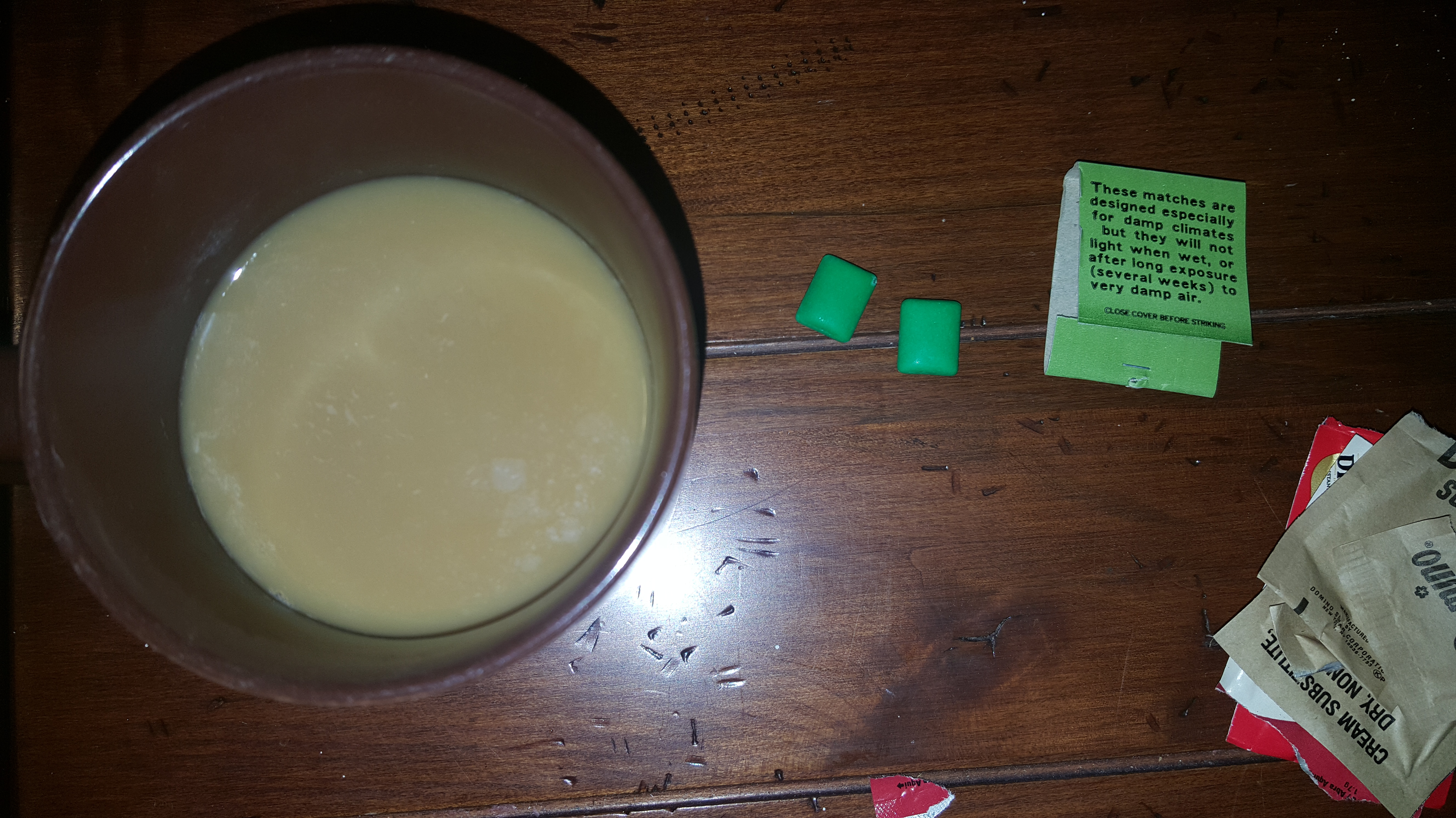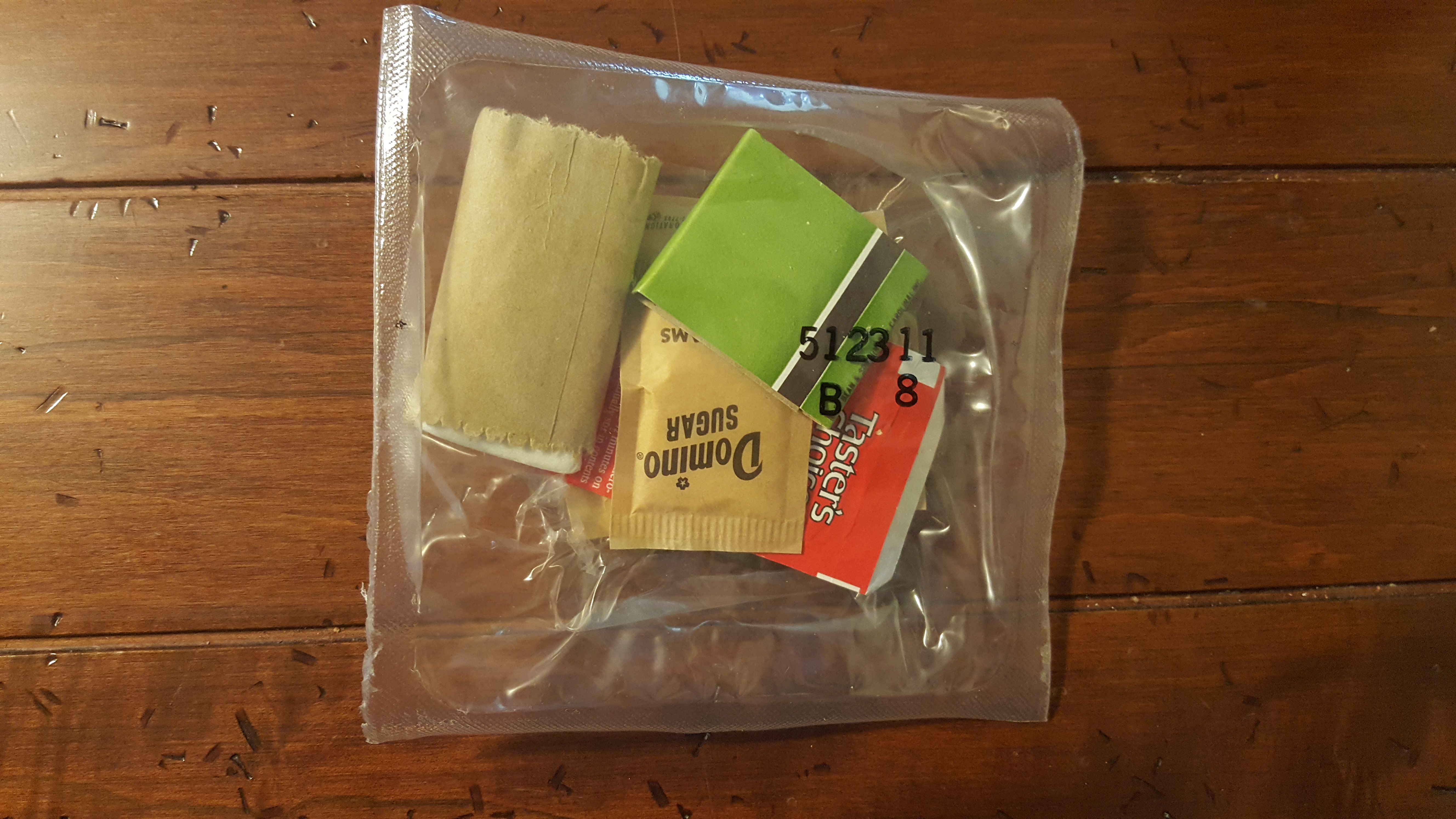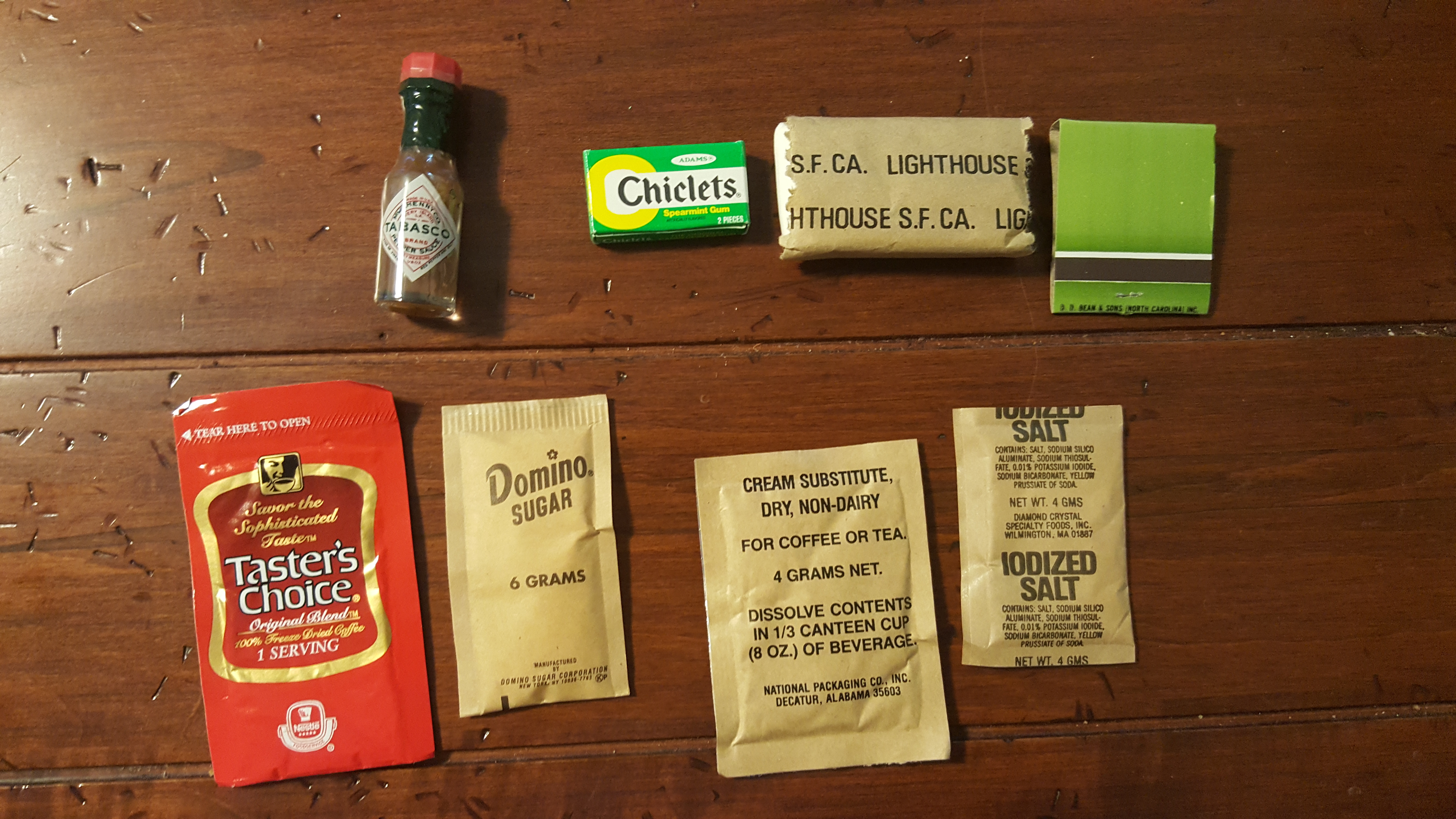 So, what did I do with the remaining components, you may ask. I ate the Chiclets gum and all I can say is that I really wish they would bring it back. The flavor doesn't last long but the flavor is great. I stored the salt, matches, toilet paper and Tabasco sauce for later use.