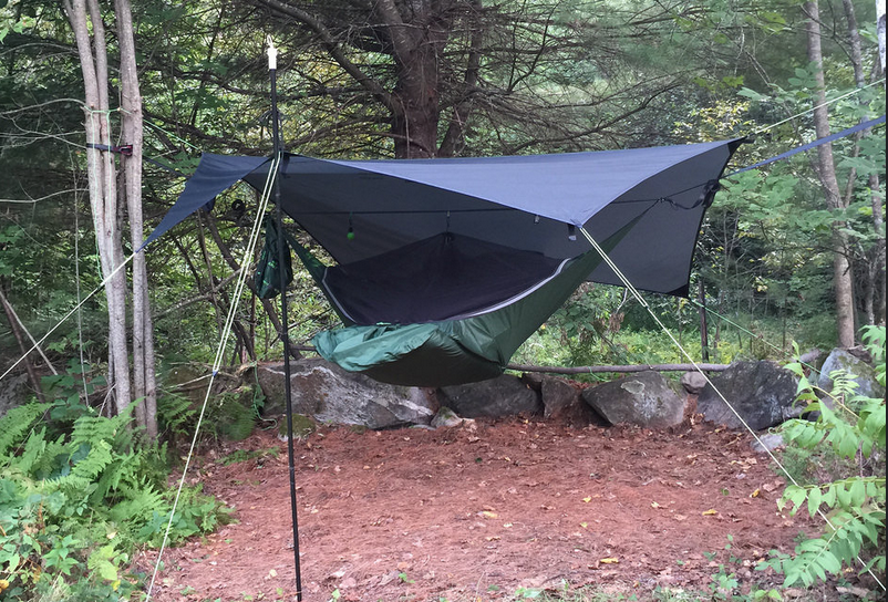 I've got one. Packs up very small and light, lets you camp in uneven areas (long as there's trees). The fly tensioner/rain collector is genius!