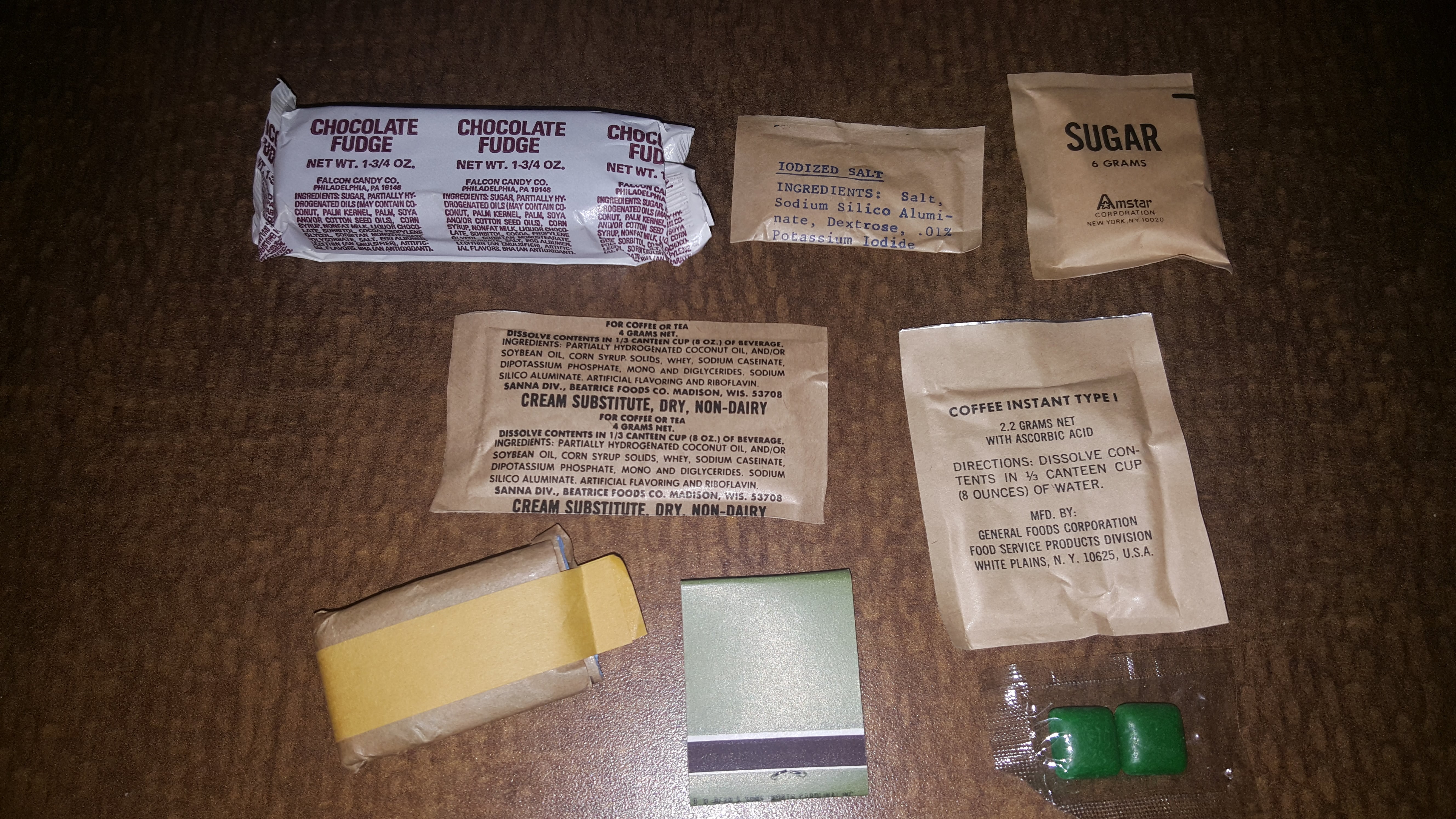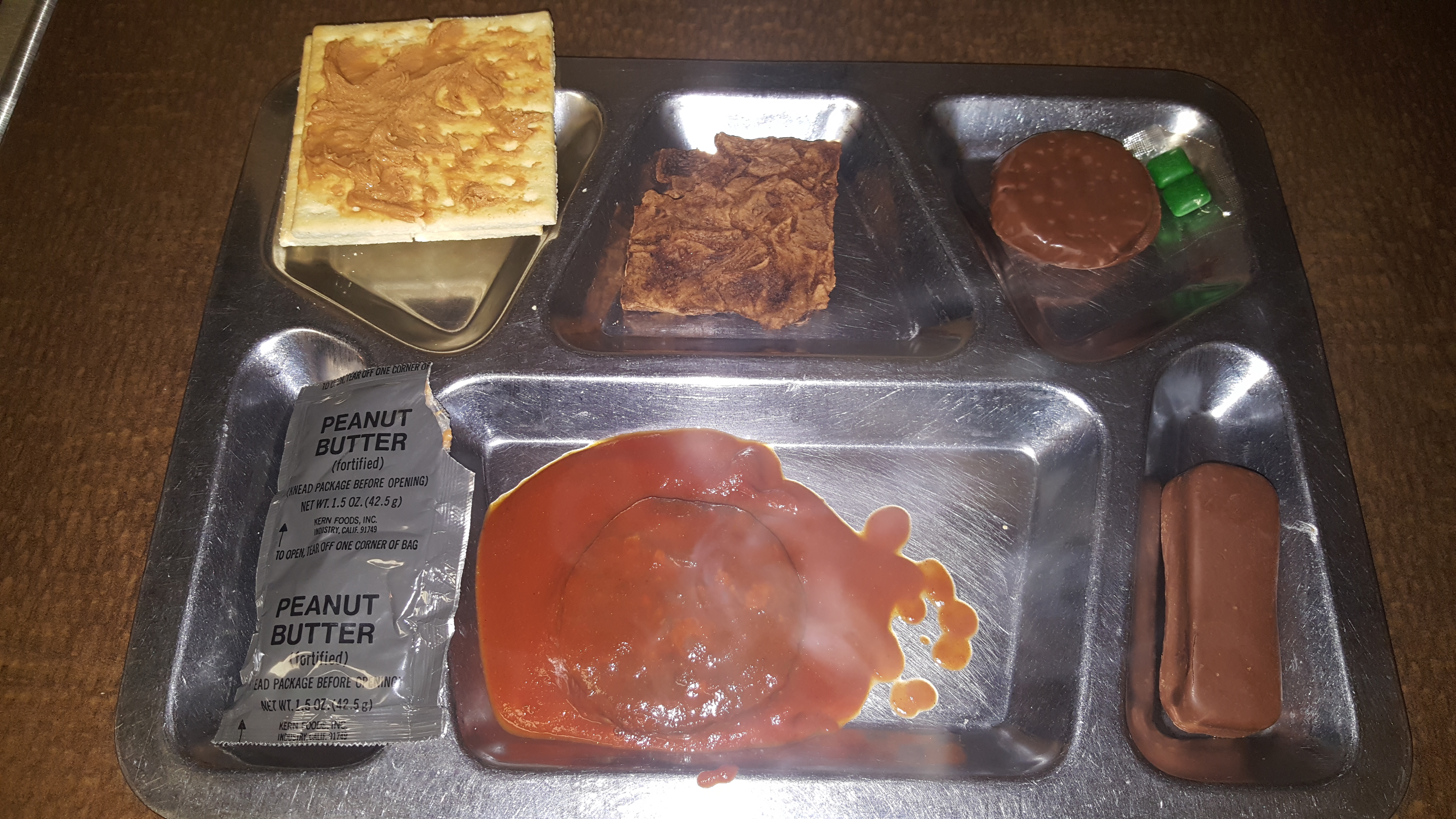 As noted in the previous reviews, the peanut butter with crackers were still good. I've never seen bad MRE peanut butter and I've seen bad MRE crackers once or twice in the hundreds that I've consumed over the last few years. The same applies with the chocolate covered oatmeal cookie. Since the creamer was clumped up, I decided against preparing the coffee.