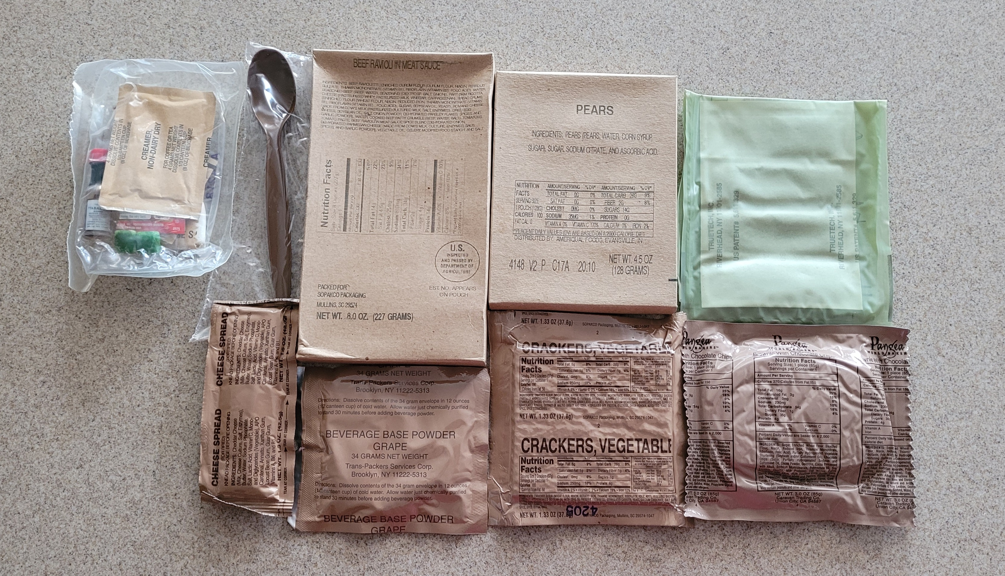 Well, to start off the FRH was dead even with the help of some salt. So into the water it goes! The Tabasco was dried out but the real test is the Red Tasters Choice. WOW, it was good! It’s a first for me. Maybe there is hope after all. Much to my surprise, the only thing not edible was the pears. They smelled ok but had a heavy chemical after taste. The ravioli was a bit soft and tasted as you would expect. As you may have guessed, it was better with some cracker and cheese. Yep, the cheese was just the way I like it. Even had a few Dub C “megabites”