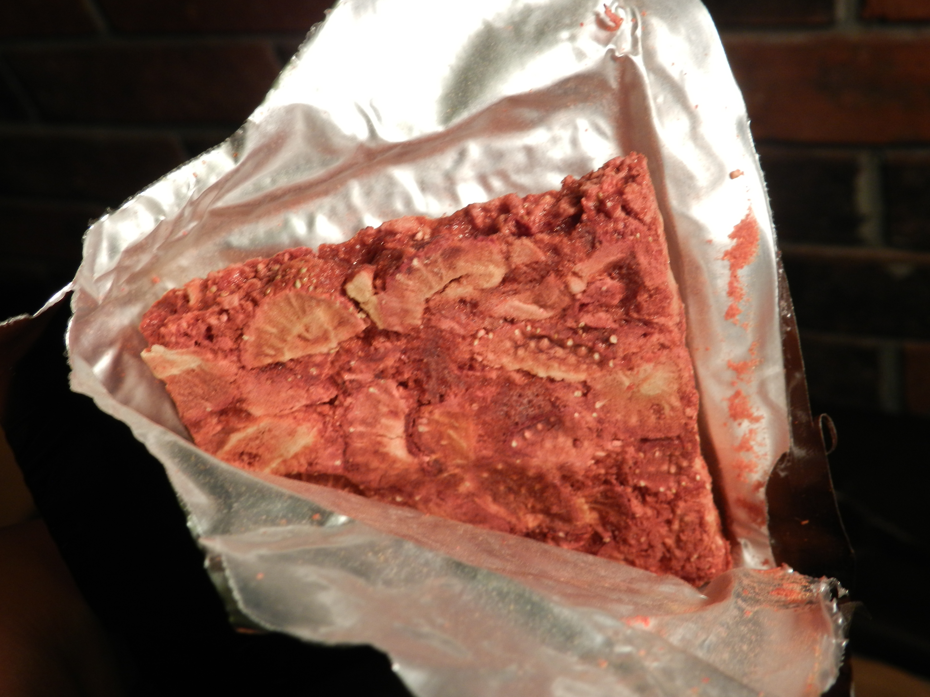 I am sad to tell you the strawberries had a pinhole, the square was moist, flexible, and certainly not appetizing looking - not normal for an FD-Fruit!