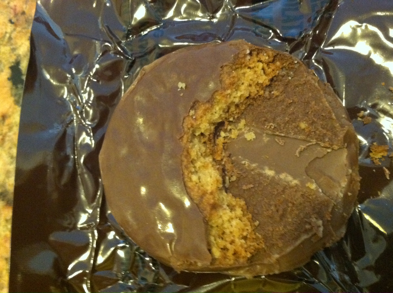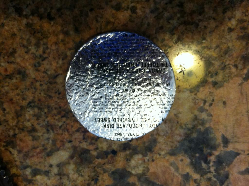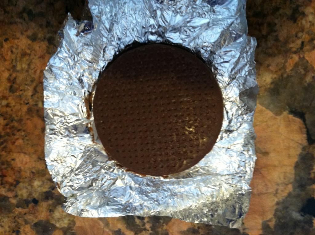 Appearance: A round chunk of chocolate wrapped in foil.