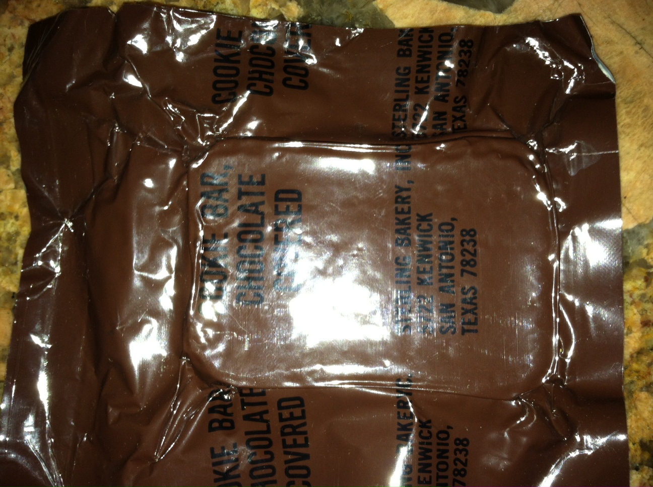 Smell: Odd MRE smell, I think this was from the packaging and not the cookie. Smells kind of like recycled paper, I recall some of the older MRE's smelling like this due to the plastic or packaging.