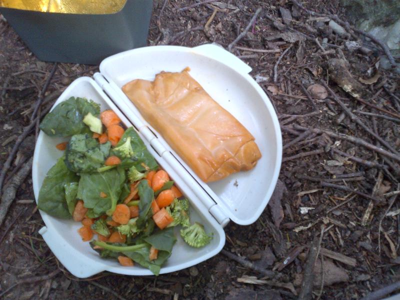 I was working by the river one pleasant day this week and decided to try my YUGO mess kit* with a U.S. MRE.