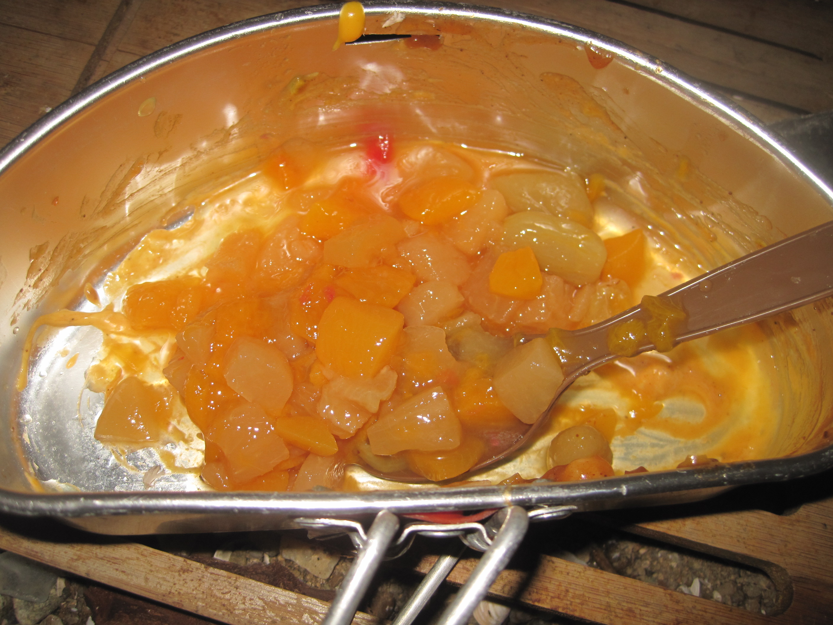 So perfect time to try Ameriqual Vegetable stew for a nighttime meal. I had the Potatoes Au gratin and mixed fruit for desert.