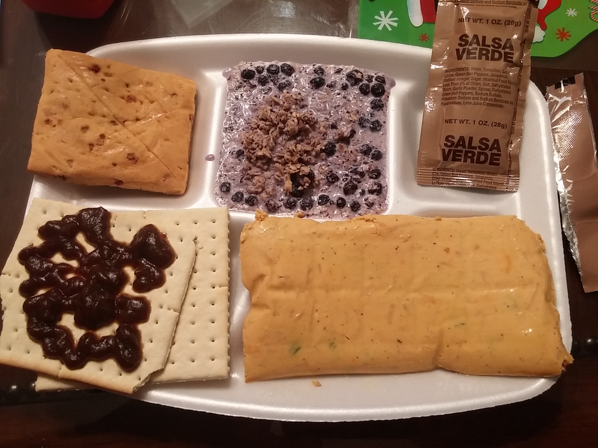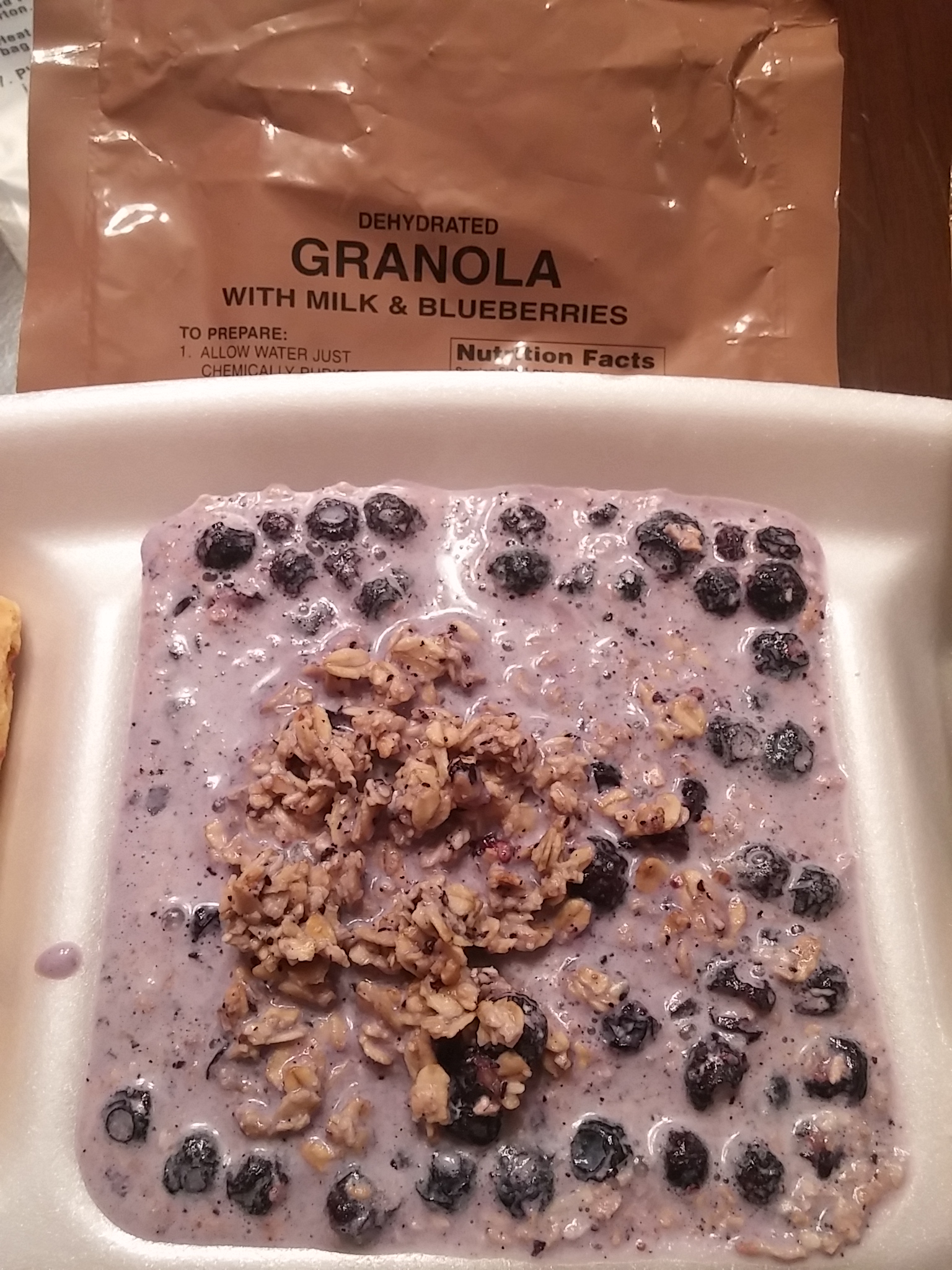 The granola with blueberries in milk was tasty and the blueberries rehydrated quite nicely. I have enjoyed every menu this comes in. (Old Smokey, I promise the next one I get is yours)