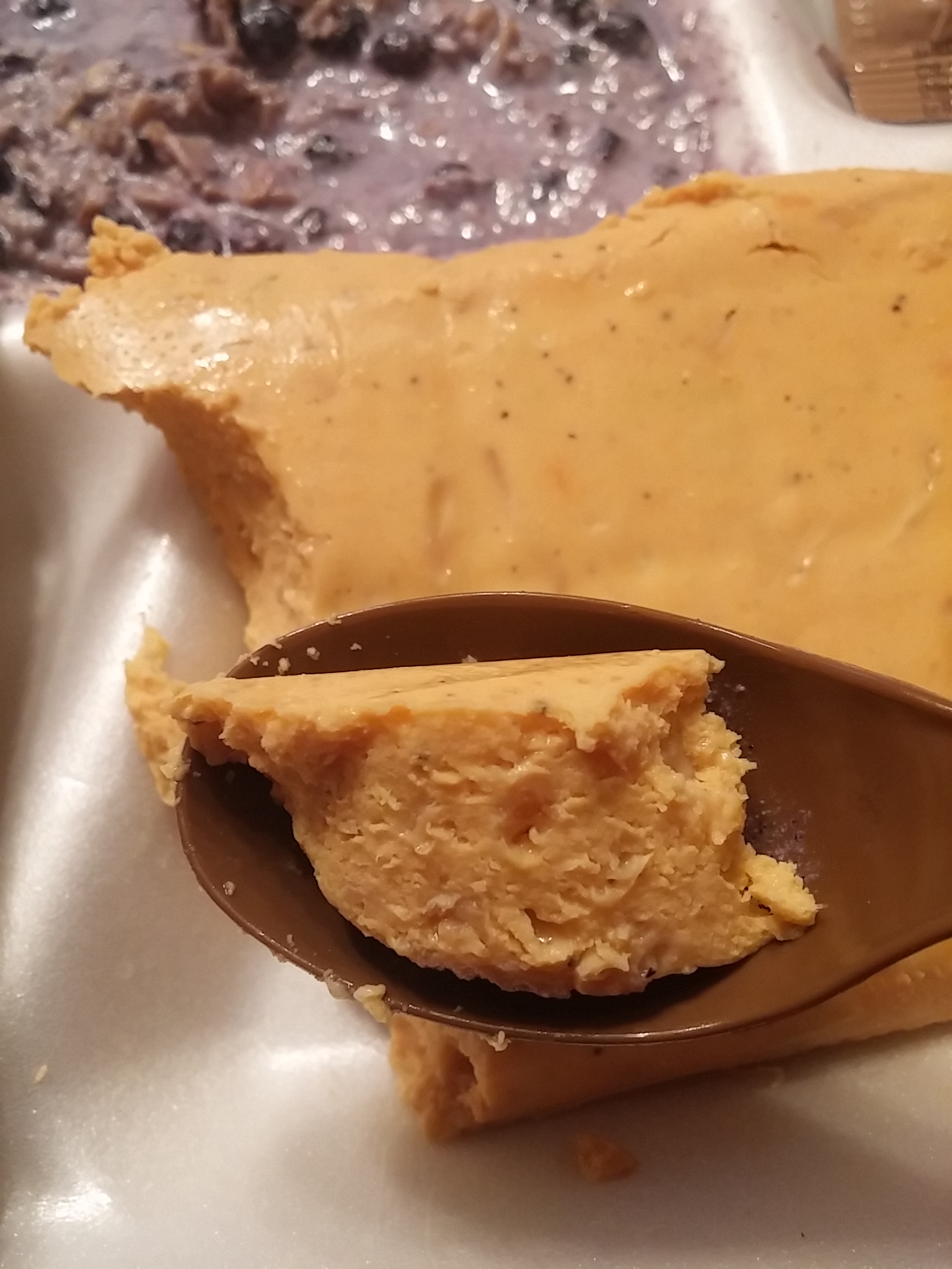 That is a good idea to chop it up and ketchup would have been good on it or a little Tabasco. Overall though it was palatable.RockyRaab wrote:The trick with this meal - if anyone gets another one - is to vigorously and completely chop up the main until it actually looks like scrambled eggs. That improves the appearance and texture. Hot sauce or ketchup adds a lot. The salsa verde is indeed horrible, however.