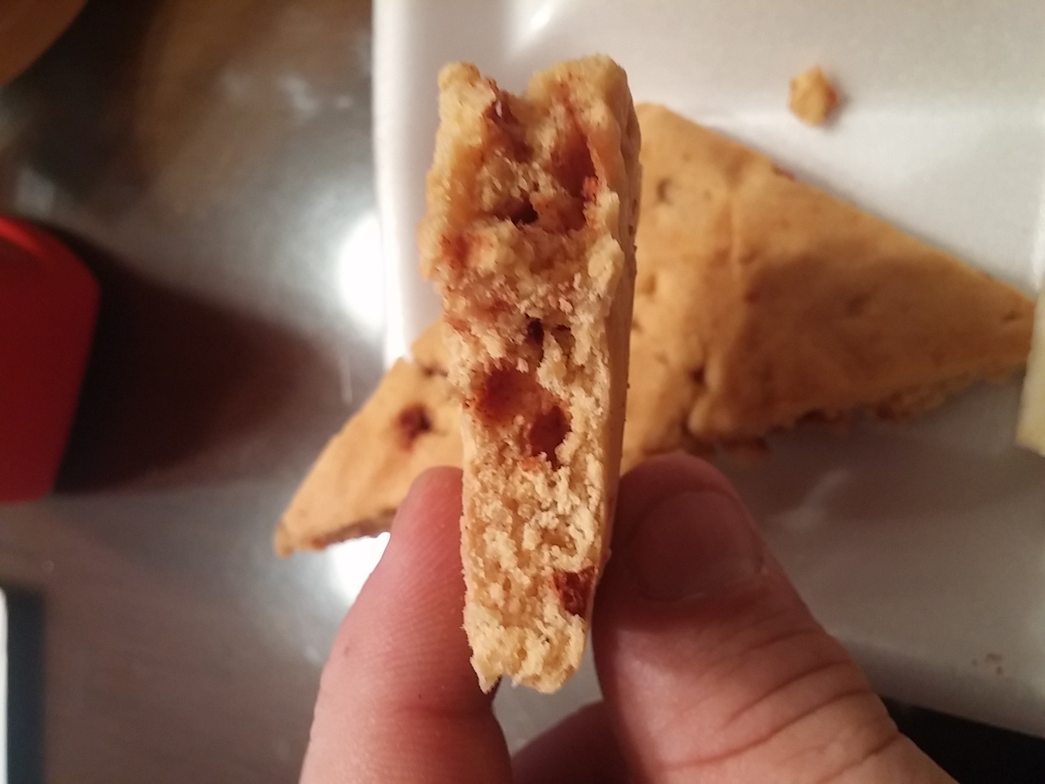 The cinnamon scone was a new thing to me. It was moist while being quite dry at the same time. It reminded me of the cinnamon bun in the FSR. Not awful but not great either.