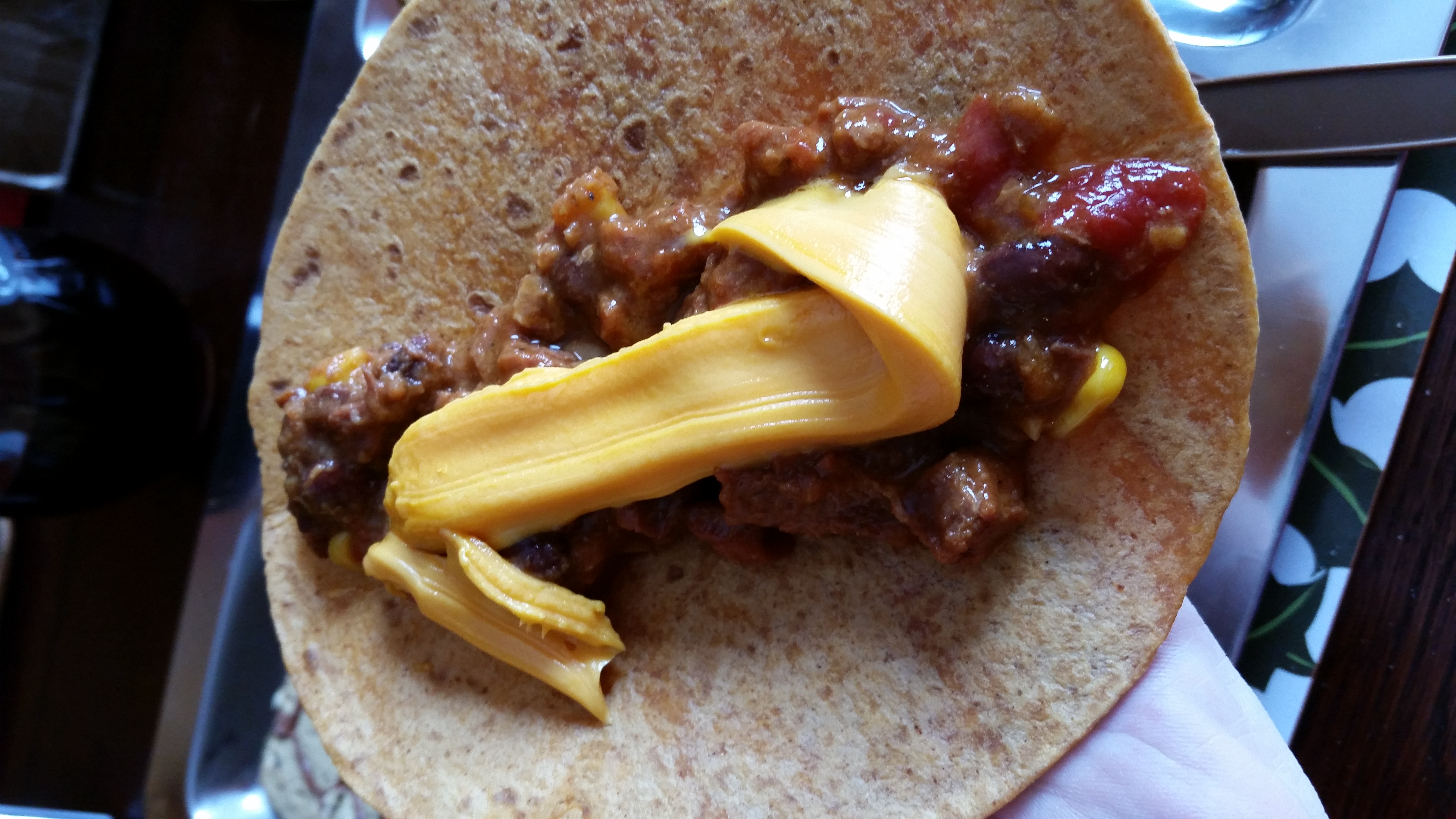 Packing some into a tortilla with some cheese spread only made it better, if that's even possible.