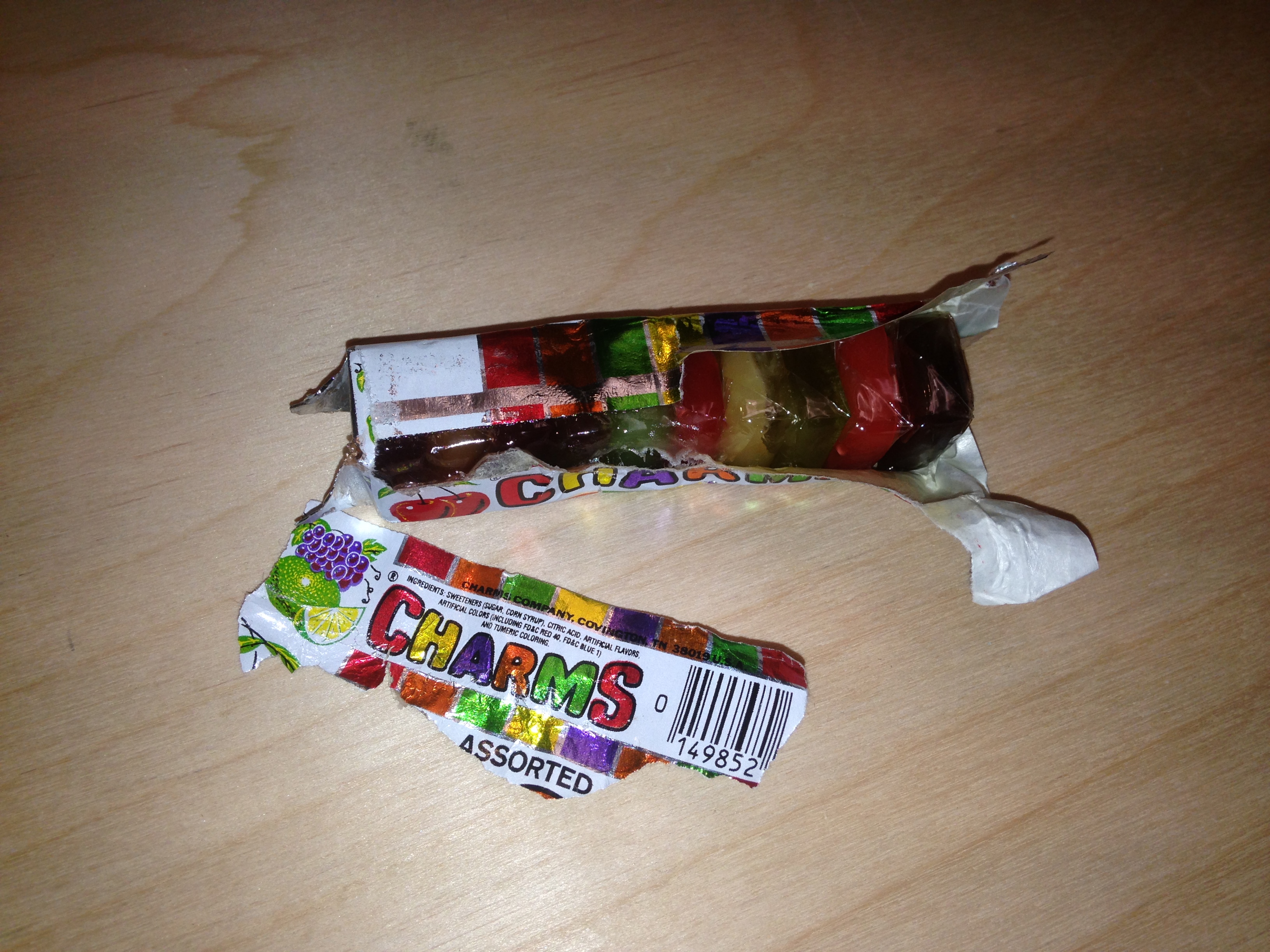 All of the contents were in great condition. The beverage base was grape. The creamer had hardened, which I've read is typical. The Tabasco bottle was intact, with no leaks, although the sauce itself had darkened a bit. The peanut butter still felt soft. The candy was Charms.