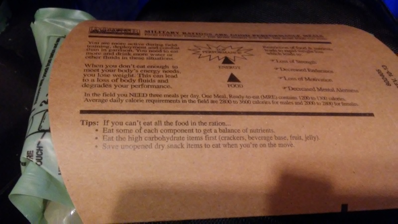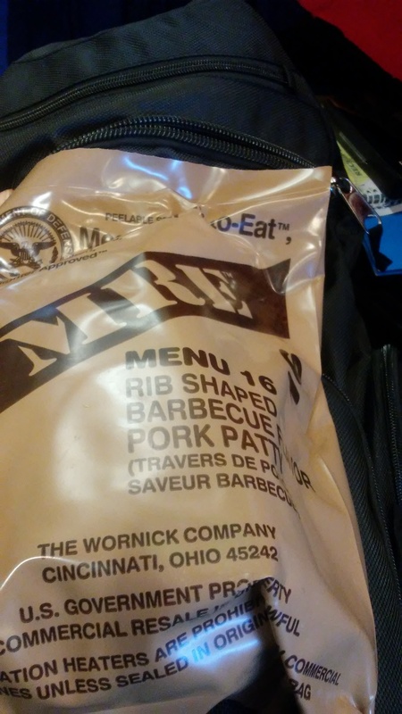 today's gourmet choice was a Menu 16, Pork Rib circa 2014. It was still in great shape, and make a great all day meal for the show, minus one component.... contents