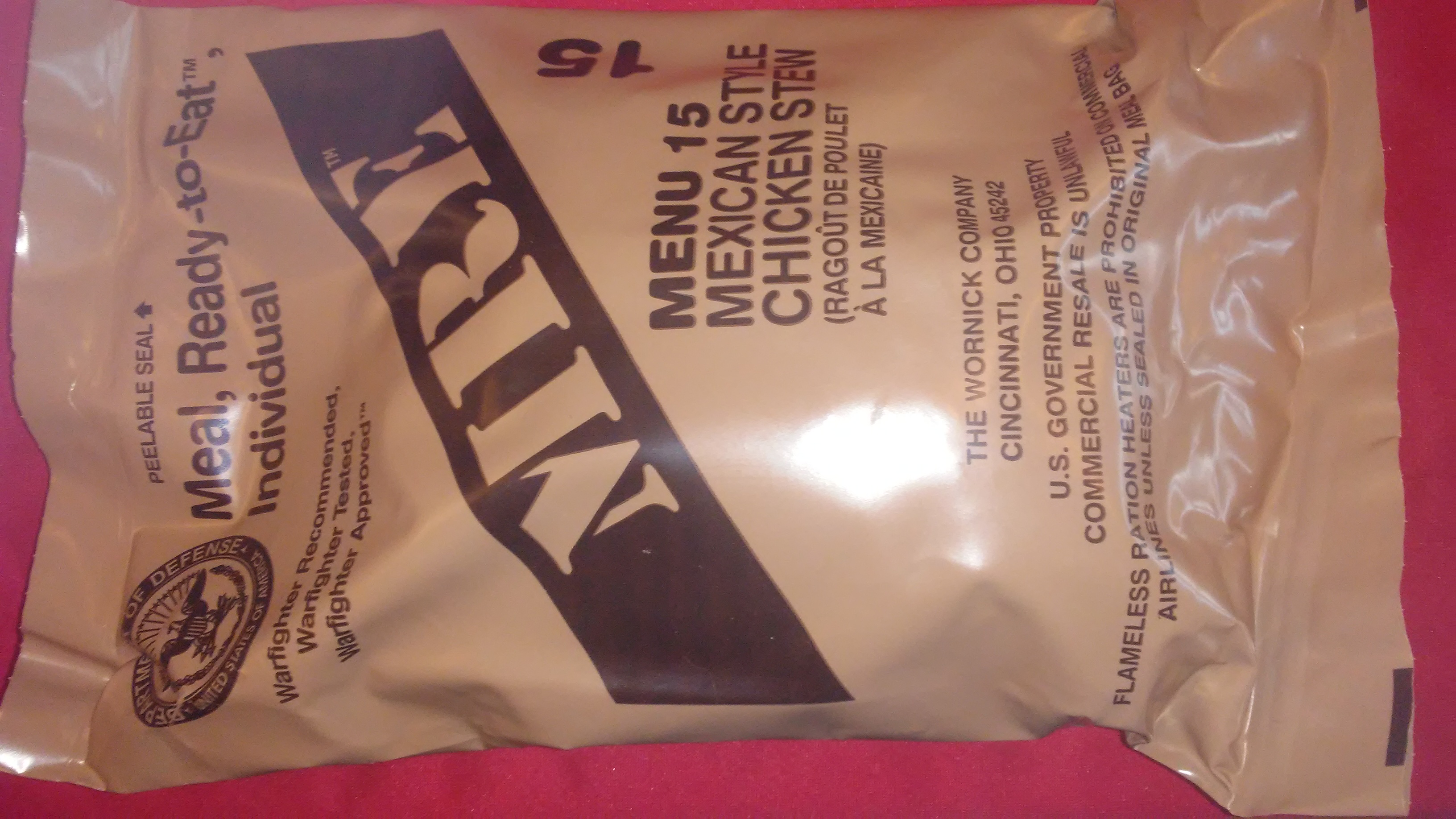 So on day 2 of the show, I decided to try something I had not had before. Menu 15 Mexican Chicken stew. Gundog says this one is one of his favorites, so I figured it had to be halfway decent...