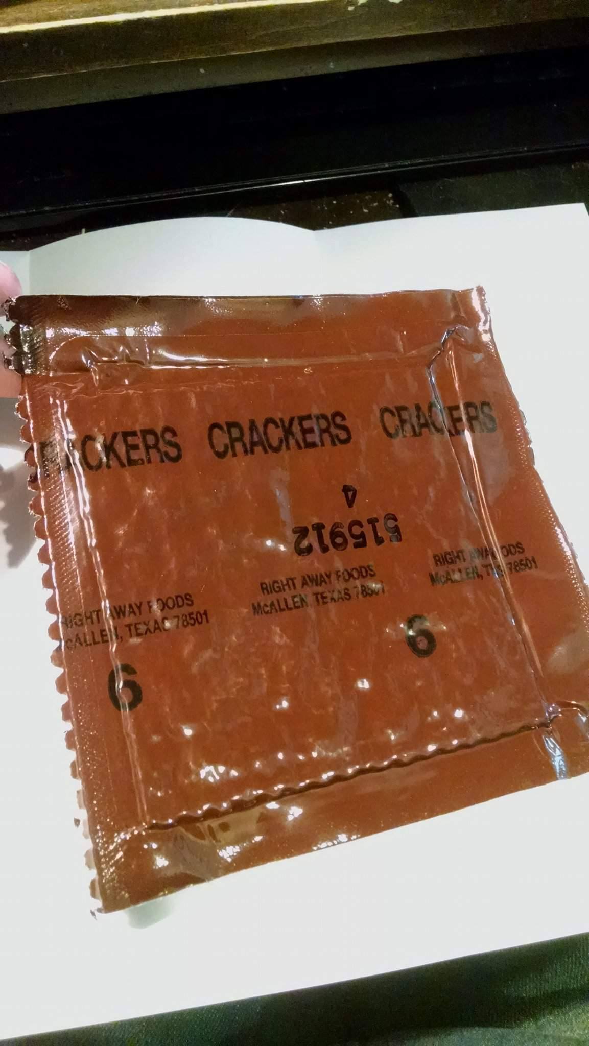 Nothing too special, just some good ol' crackers from a 1995 US Military MRE.