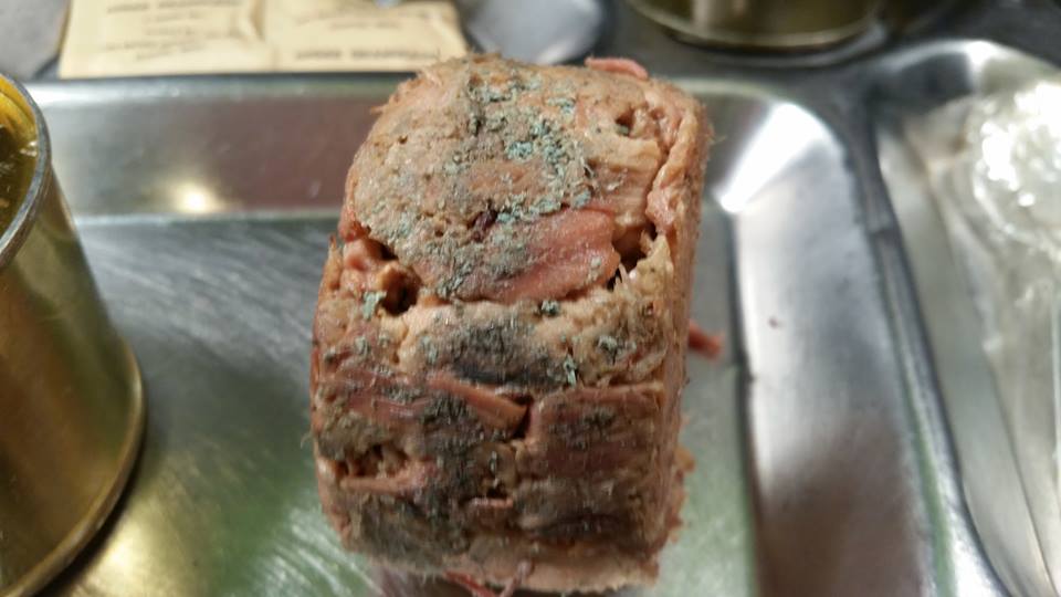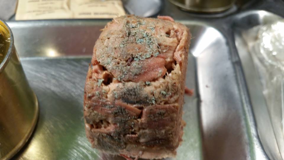 The main - turkey loaf mold reacted. The mold literally got darker and appeared to grow as it sat out in open air.. making what I deem the most horrifying Ration experience I have witnessed yet. It was disturbing to me - I was actually worried about breathing the same air shared in the room of it.