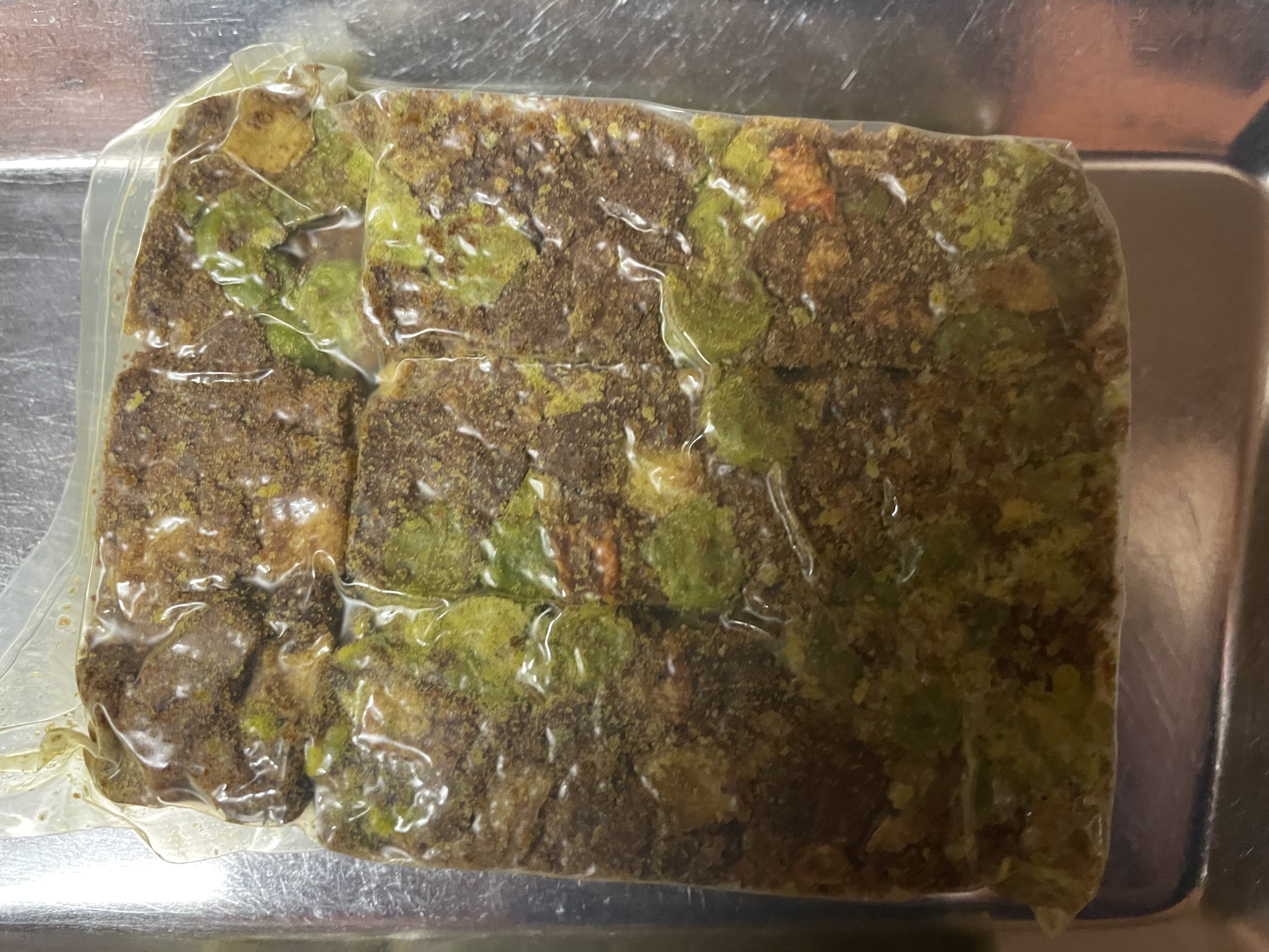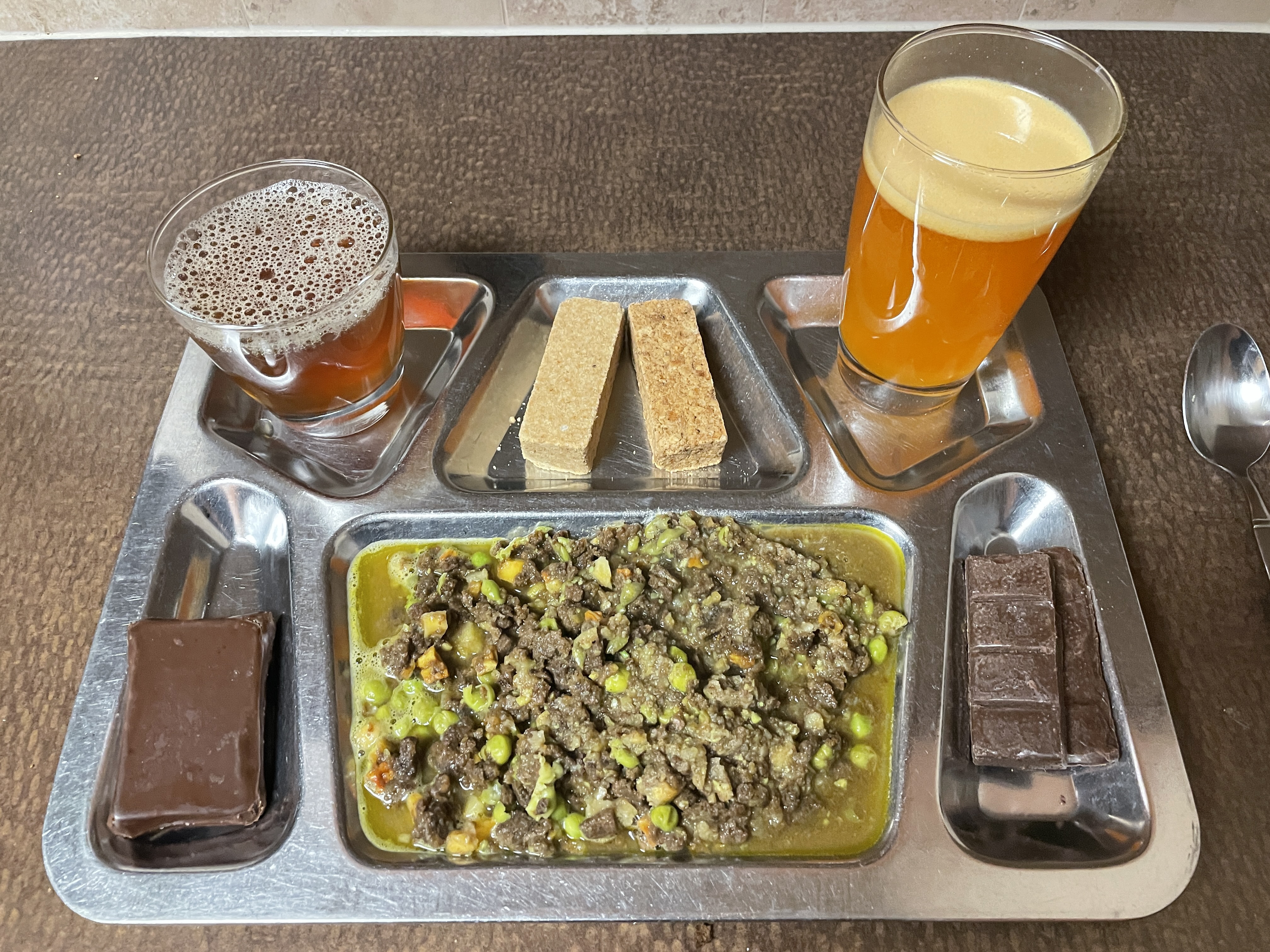 Here's a closeup of the beef stew in its packaging. They divided it into rectangular shaped pieces, likely to help conserve space.