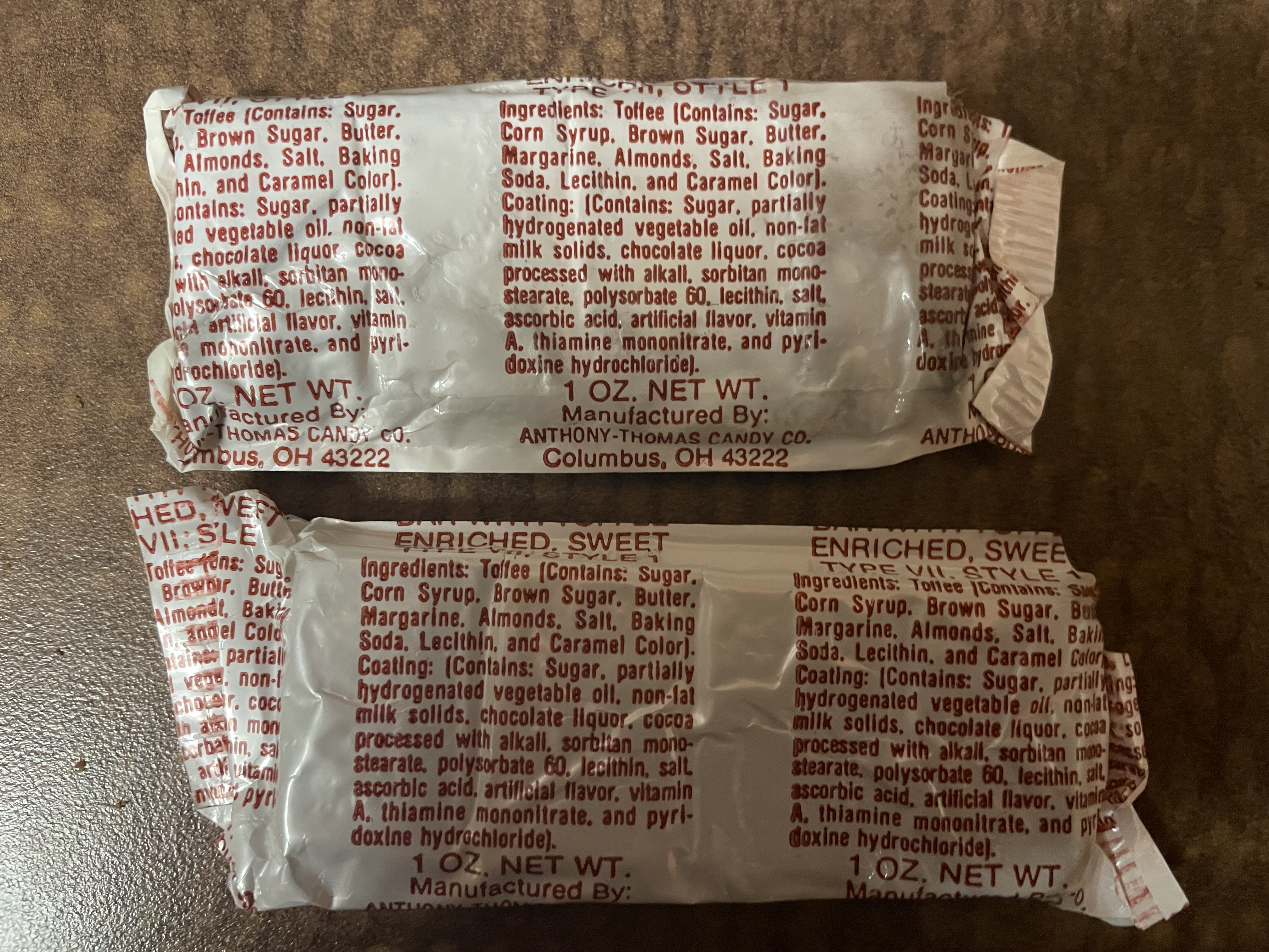 The chocolate toffee bars were okay but I could tell they were starting to turn. They were still edible, however my tongue was starting to feel just a bit numb after eating both of them. The chocolate flavor was still very strong, it almost reminded me of the toffee Symphony bar you can get at the store, just much cheaper tasting.