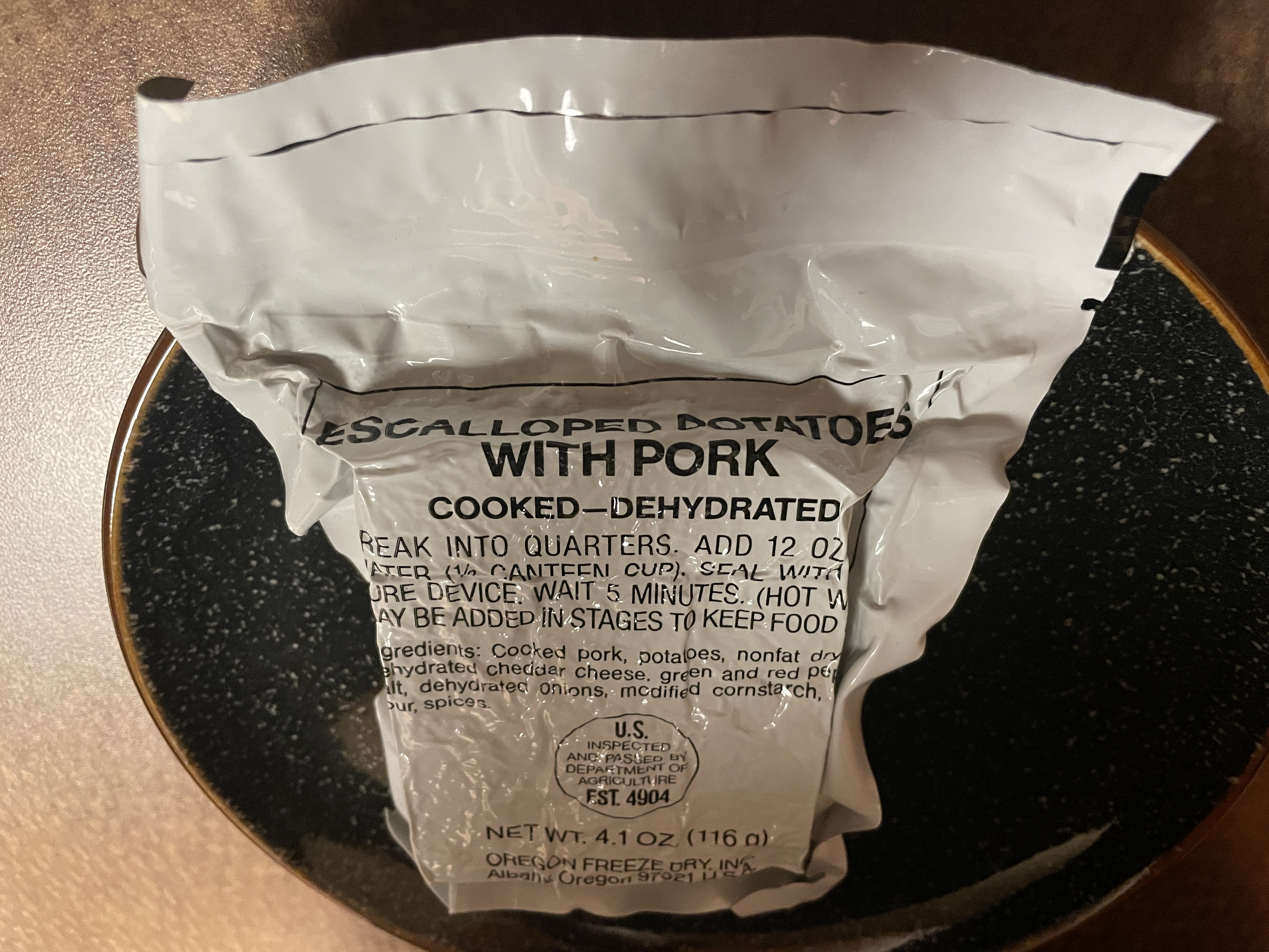 Lastly, I had this escalloped potatoes with pork ration. I decided to try this late on. I had to tilt the camera in a weird angle to show the entire label.