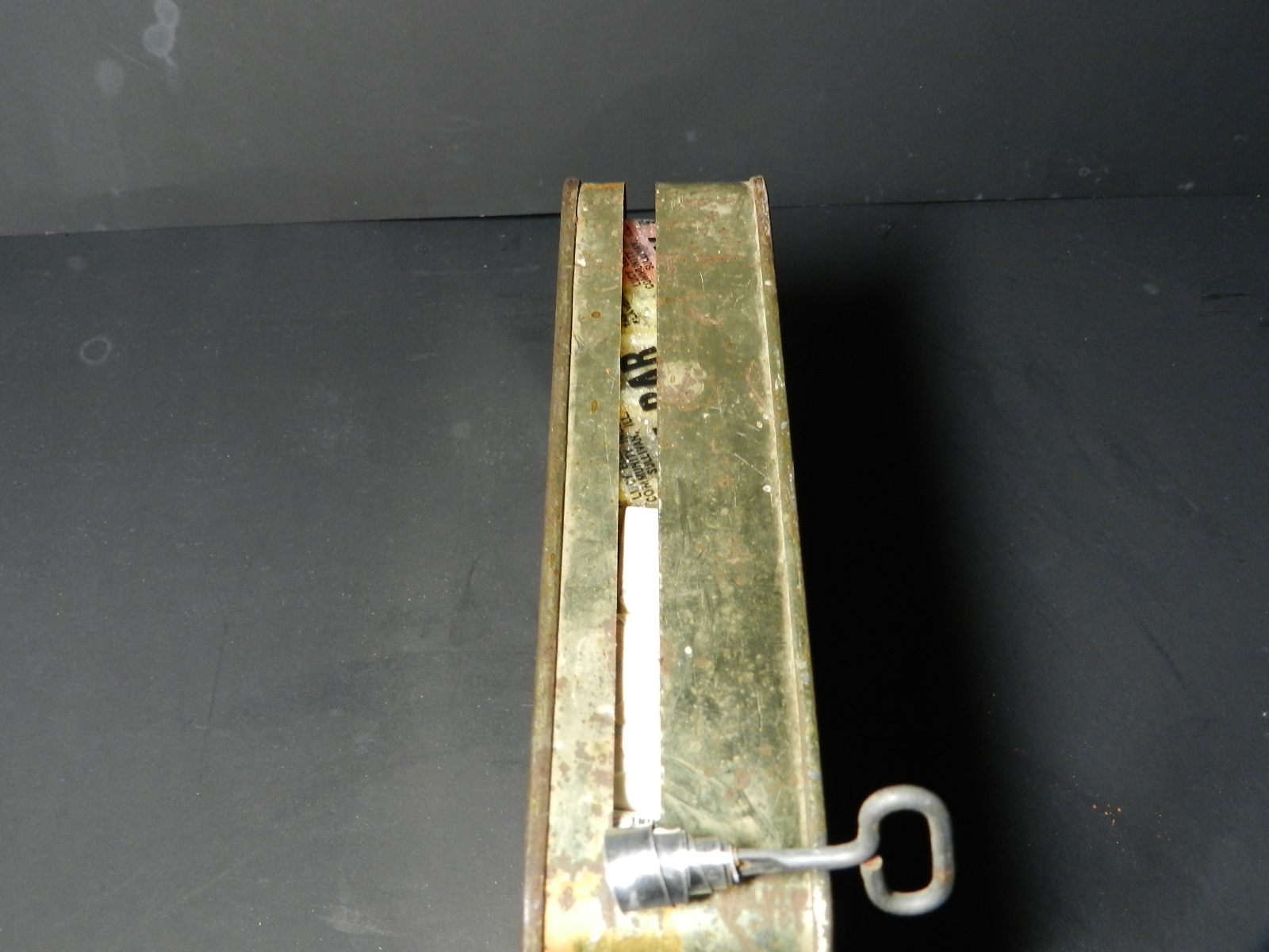 For use in survival in tropical situations, the Food Packet, Survival, ST is designed to feed one man for three days or three men for one day. The packet is composed principally of starch jelly bars, high in caloric density and very stable when stored at high temperatures. The ration does not provoke thirst and will be beneficial even when consumed under conditions when water may be critically limited. It is for consumption only in emergencies. It is packed in a flat rectangular can with a can opener taped to the bottom.