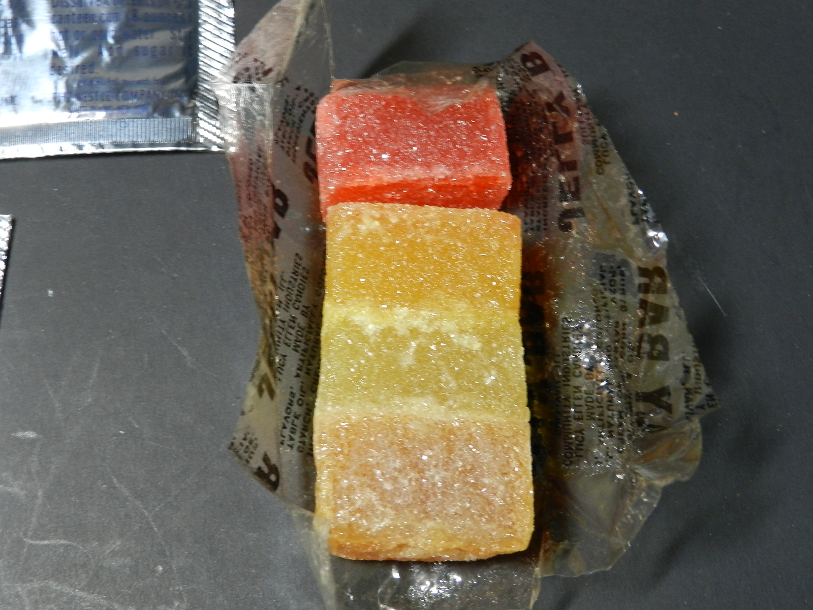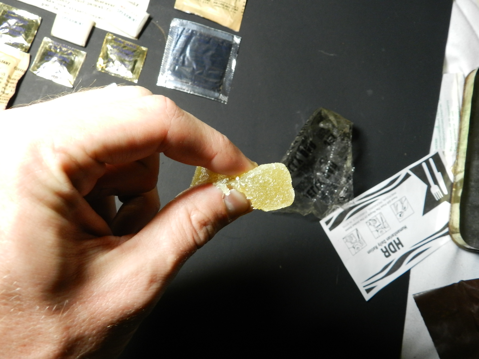 This ration would be great if you needed to conserve water too. Look at these items, only the tea and coffee are somewhat thirst provoking in this. It's a really efficient ration - and it's almost 100% edible still. The jelly bars are fantastic!