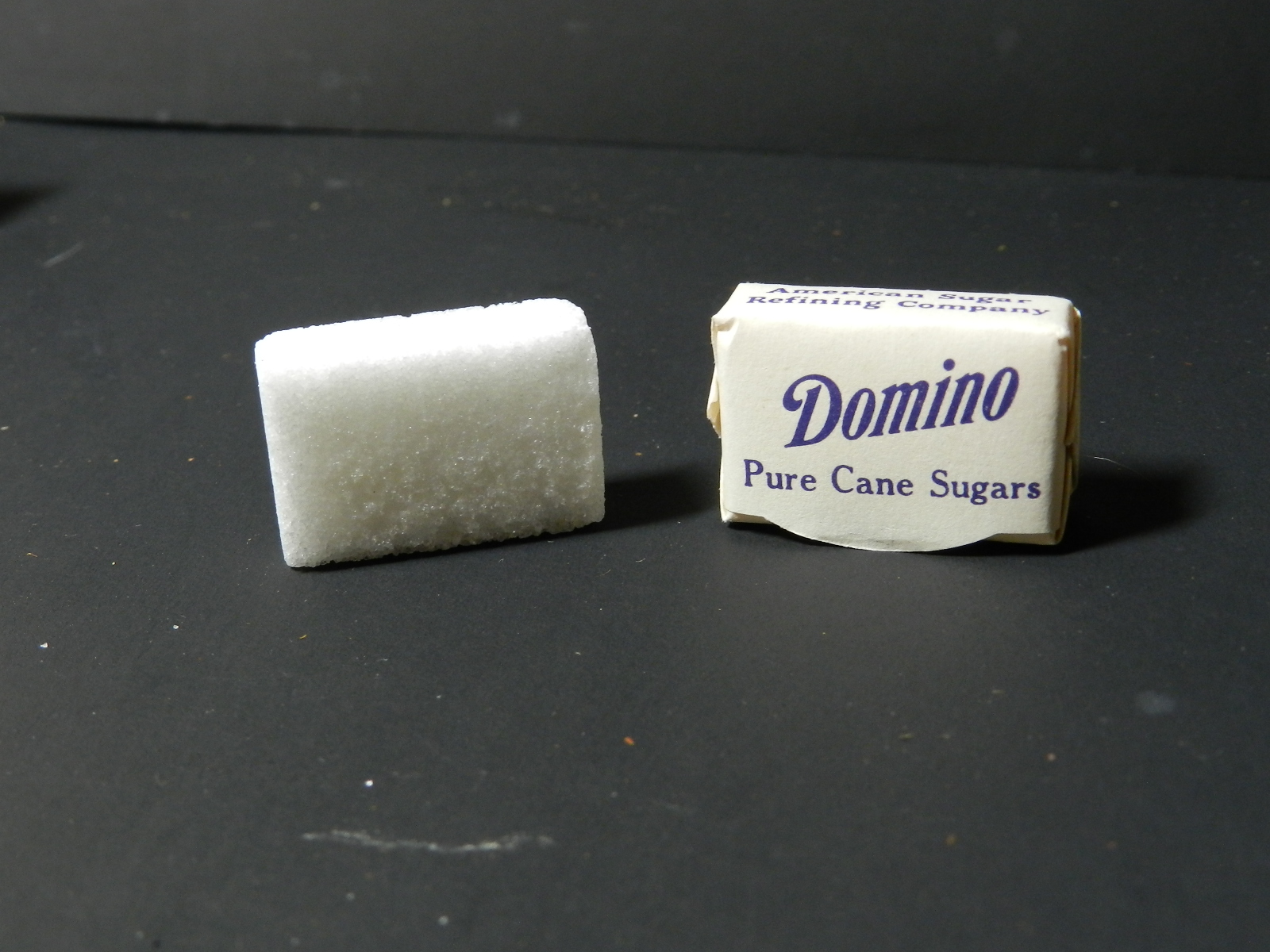 Ate a sugar cube for fun. I always love these things, I shouldn't ever eat them.. I'll bet if I put those Domino sugar cubes in my glass case at one of the antique shows I set up at, I could get $3-5 a piece for em at least. People love to pay good money for old food! I know, because I pay good money for old food! :lol: :roll: