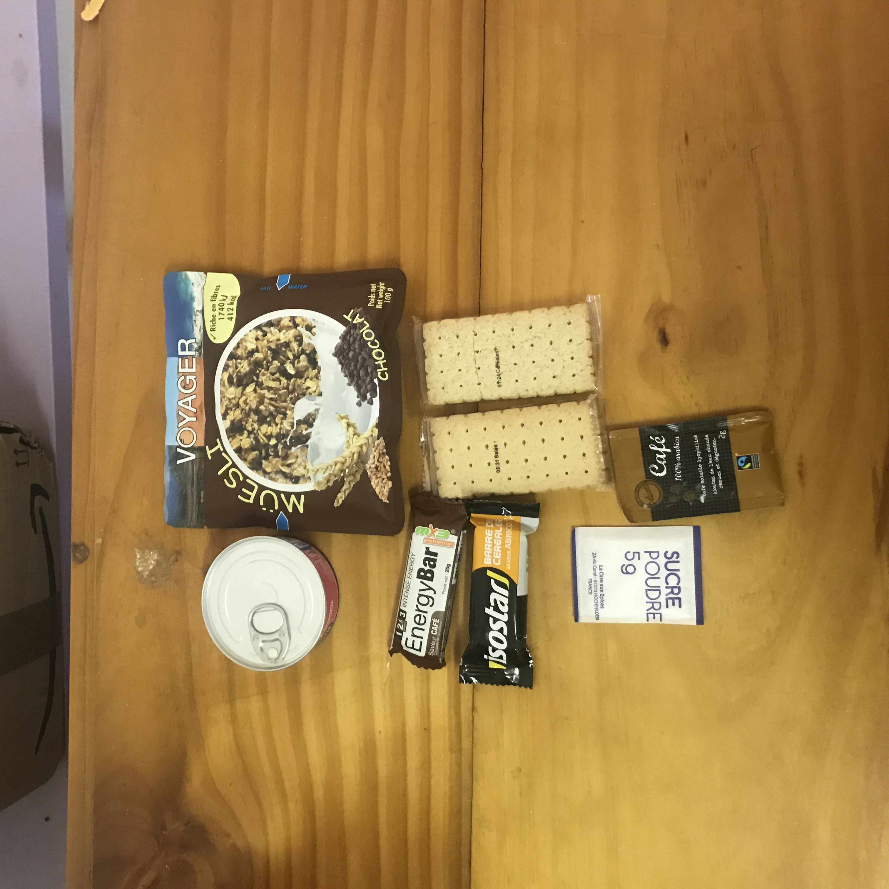 For dinner there was a tasty Asian style shrimp with chicken. Also Asian style soup, chocolate, coffee, rice pudding, the remaining biscuits and some very awful tasting isotonic drink mix.