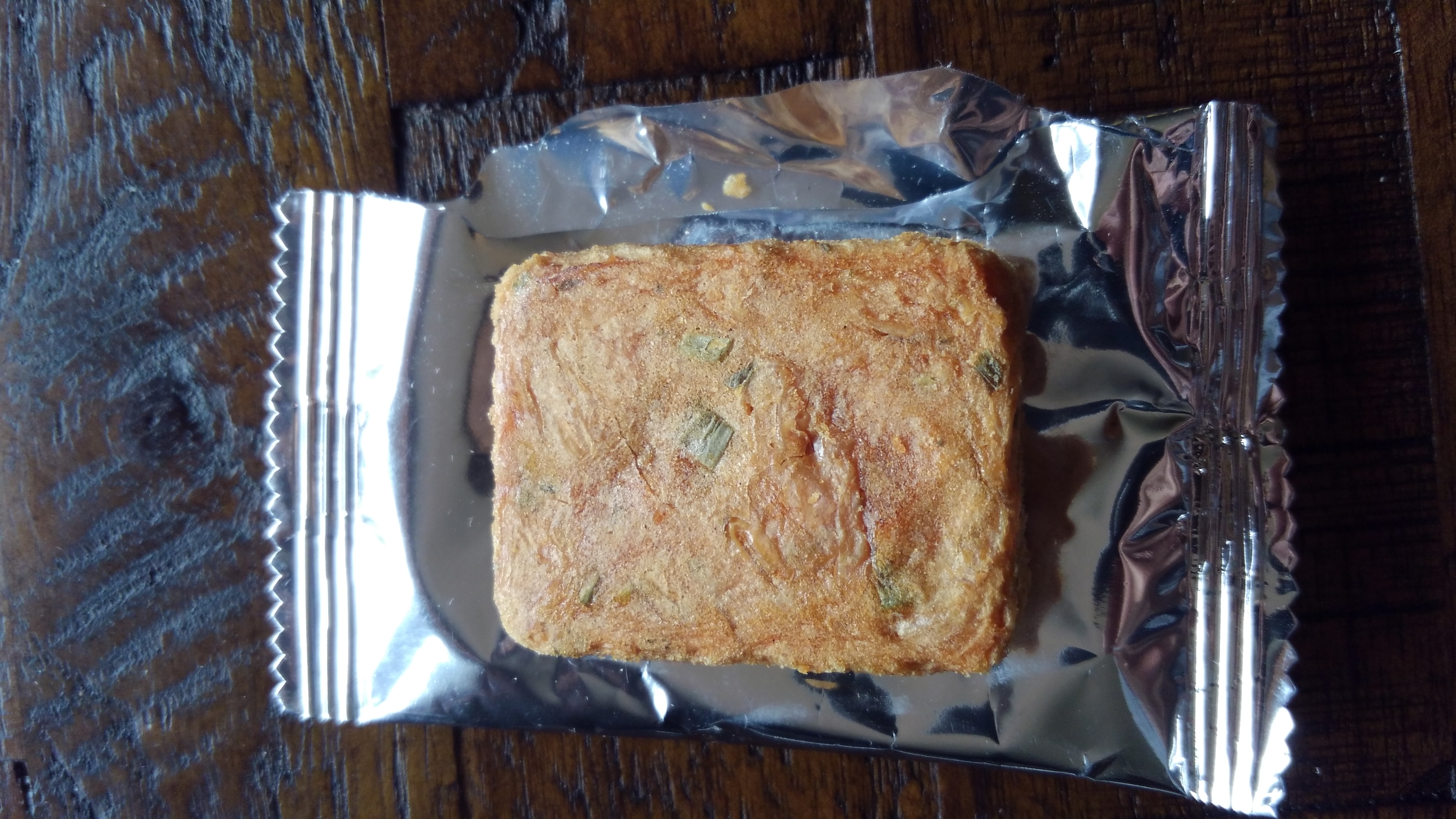 It occurred to me while I was finishing the soup that even though this ration doesn't come with any beverages, the soup cube does a perfectly acceptable job of filling the liquid requirement. Also, I find that I enjoy these Chinese freeze-dried soups much better than the bouillon cubes or powdered mixes you find in so many other rations.