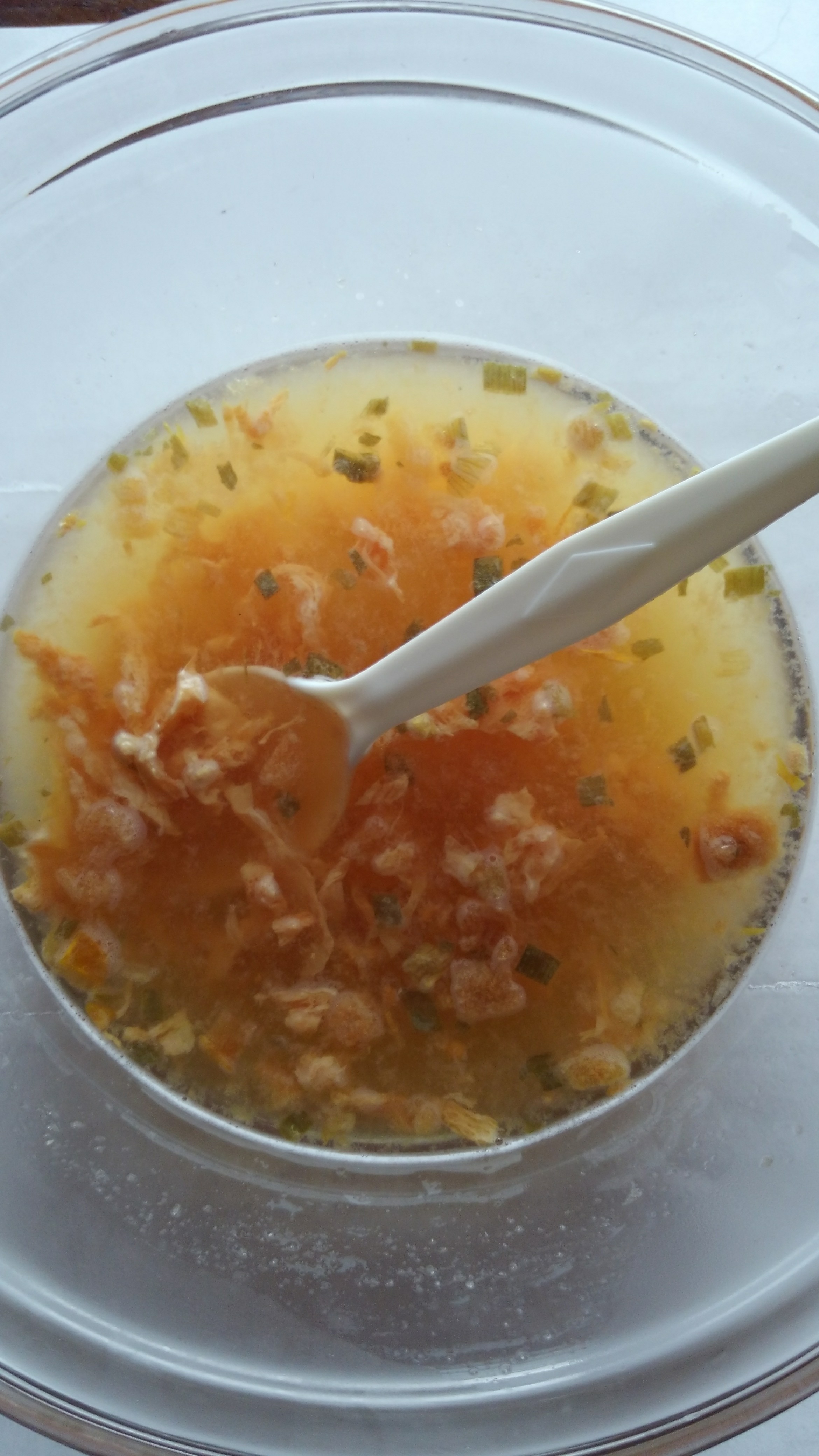 After adding about a cup of water, the cube easily dissolved into a brothy soup filled with lots of egg bits, small diced onion and green onions.