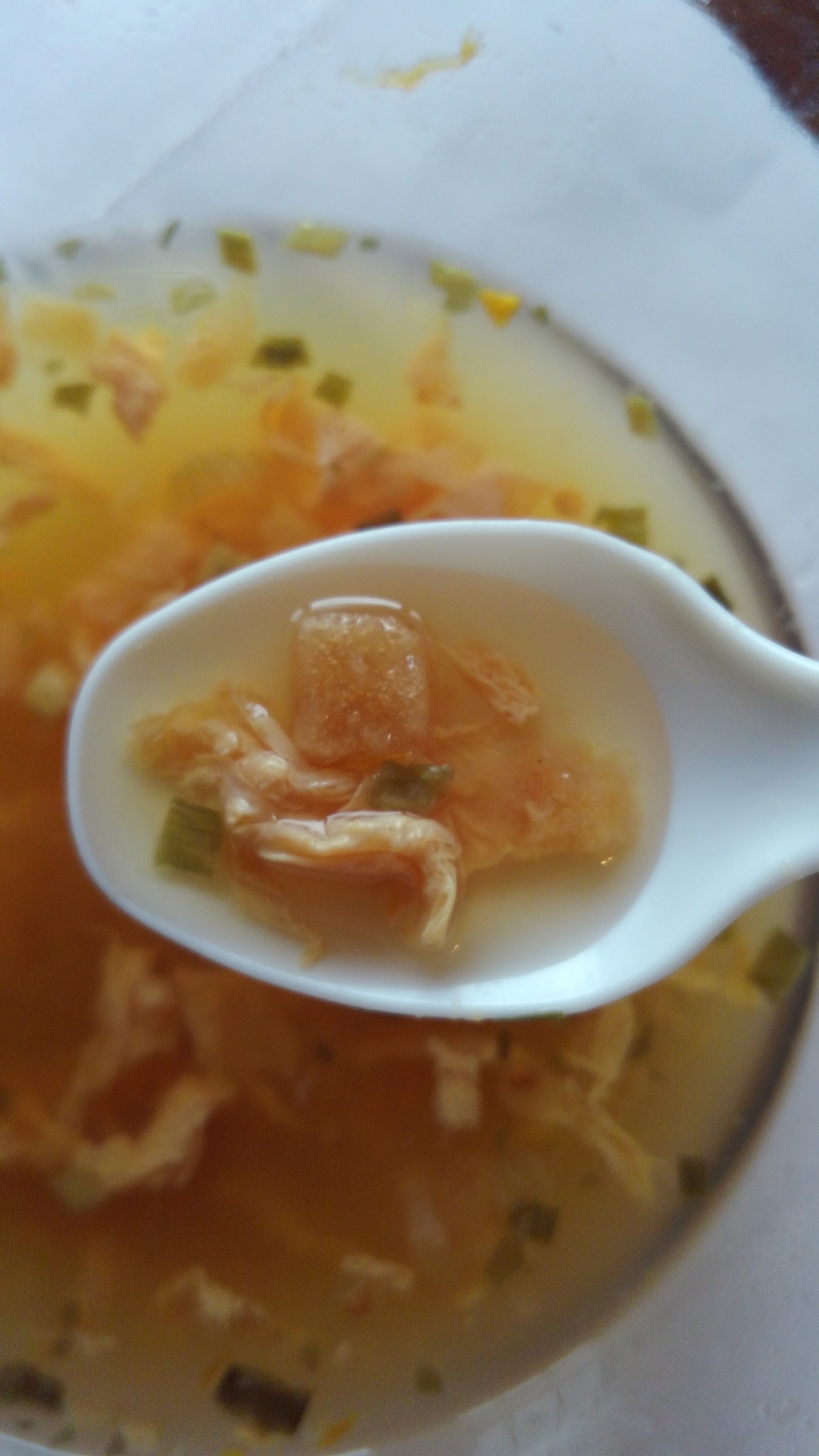 The flavor was very reminiscent of Chinese takeout hot and sour soup. Very tangy, fairly salty, with a faint chicken and tomato broth flavor. No heat to speak of. The biggest difference would be that hot and sour soup has a fuller mouthfeel, while this broth was very watery. Not in taste, but in feel. Overall, it had a nice amount of "stuff" to chew on, and a passably decent flavor.
