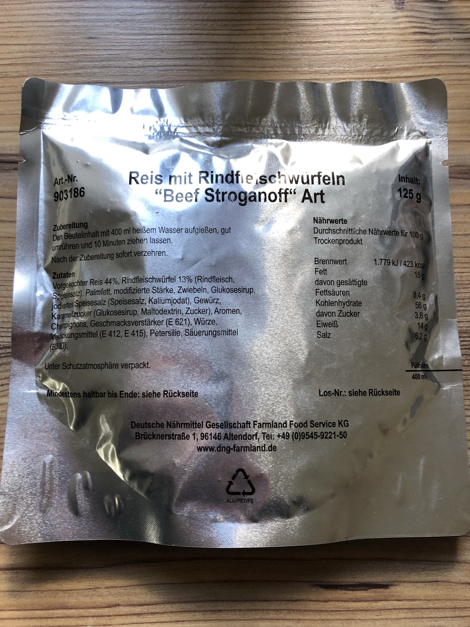 Re: EPa "Beef Stroganoff w/ rice" freezedried