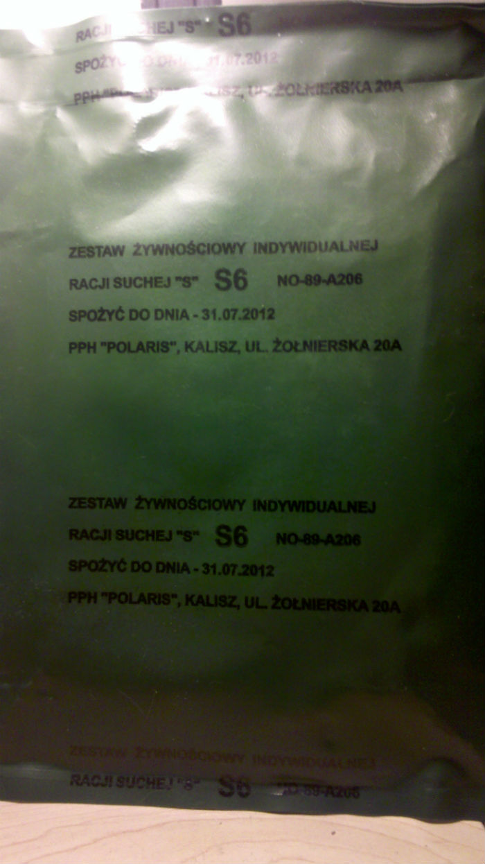 Before I start the actual review I have to mention that I found this post where Donald listed the components for the Polish S Type Rations in English. Either it's changed slightly since then or that list wasn't complete, although it was complete where it counted :mrgreen: What I had was an S6, and it consisted of: