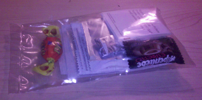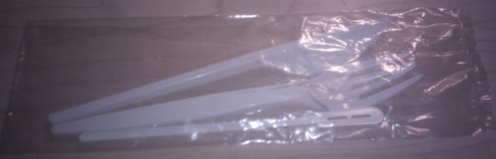 Napkin, Plastic Bag, Fork, Knife and Coffee Stirrer