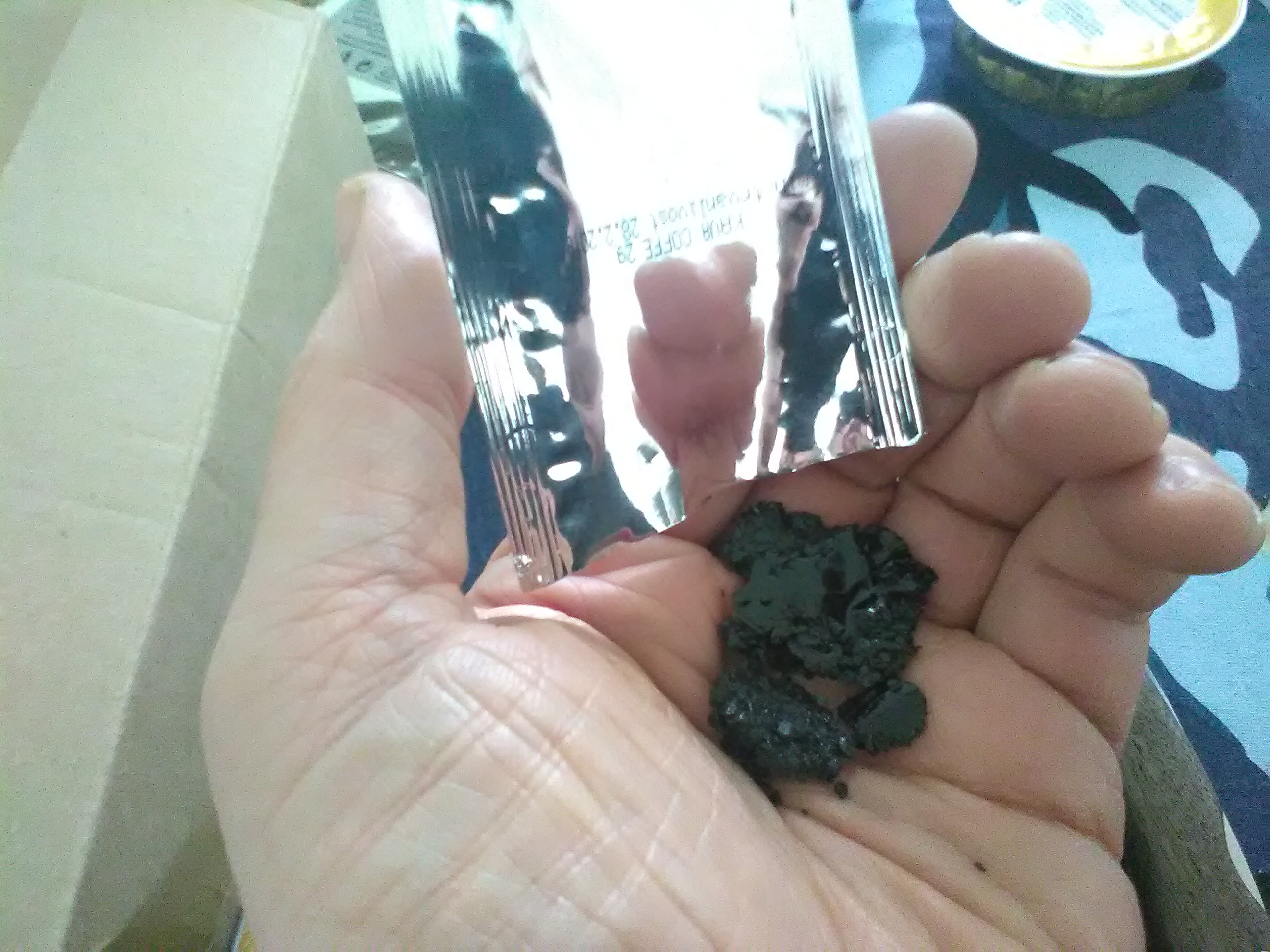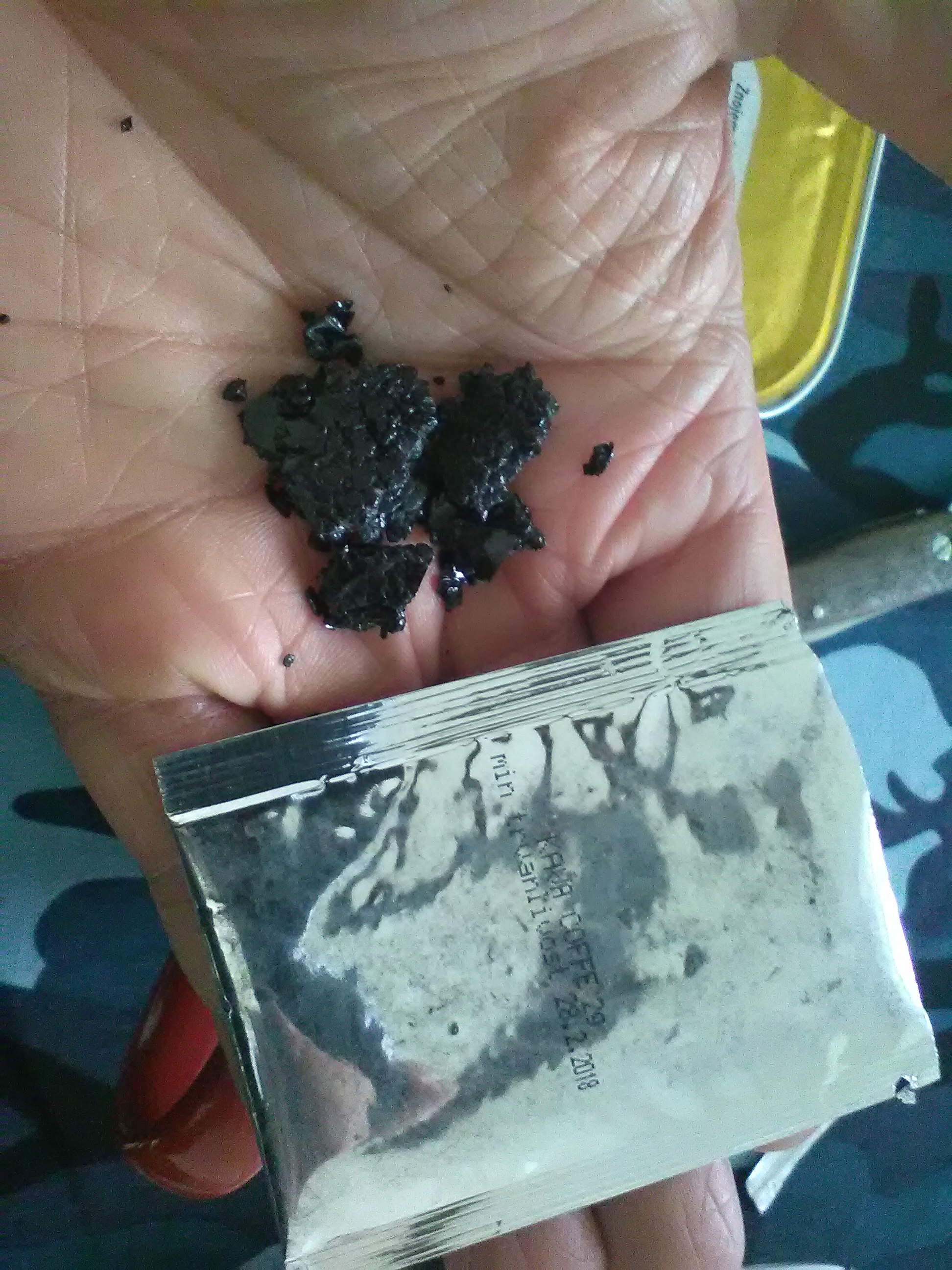 Both coffee extract sachets contained very sticky melted lumps of what i can only assume must have once been some sort of coffee granules/crystals/powder.