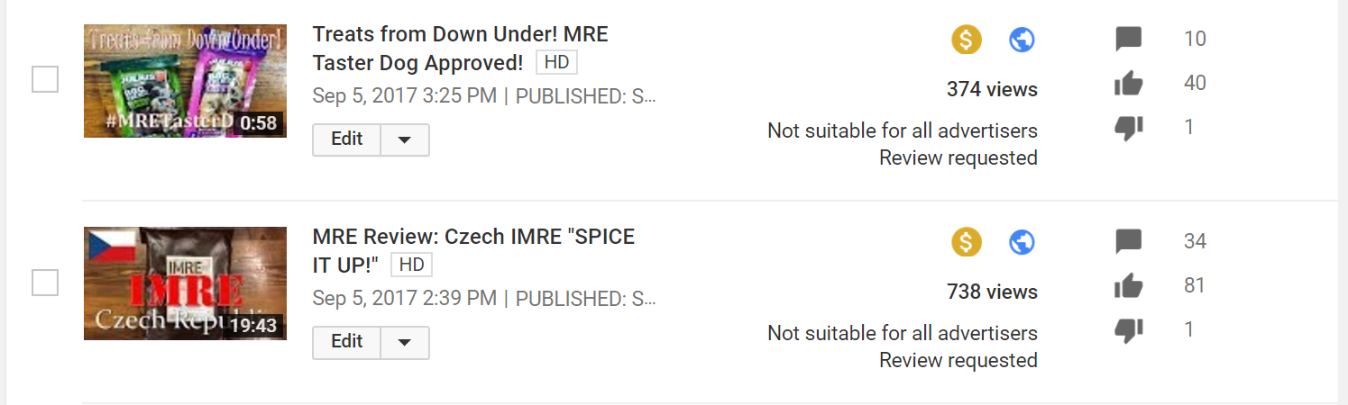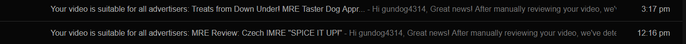 Is anyone else having issues getting the vids they produced monitized on YT? Seems every time I post a vid after the so called ad-pocalypse they is always a "not suitable for all advertisers"....Really? one of my recent posts was about dog treats. Go figure eh? Guess Australian dog treats are on the terror watch list or something...