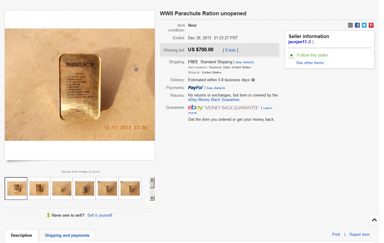 $700!!! I've seen these go for as much as $315 before, and have to wonder what makes them such a high ticket item, but $700? Wow! Does anyone know of a higher price paid for any ration item?