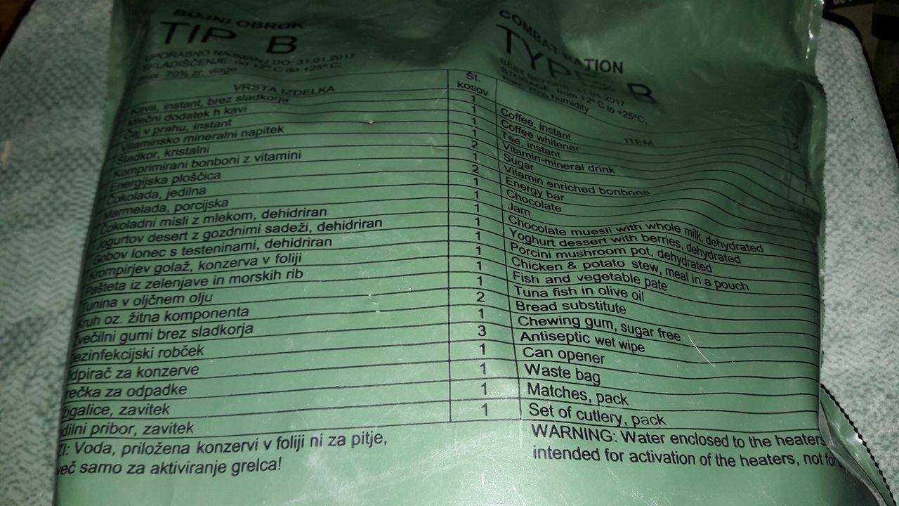 WTS Slovenian Combat Ration Type B (BB 2017)