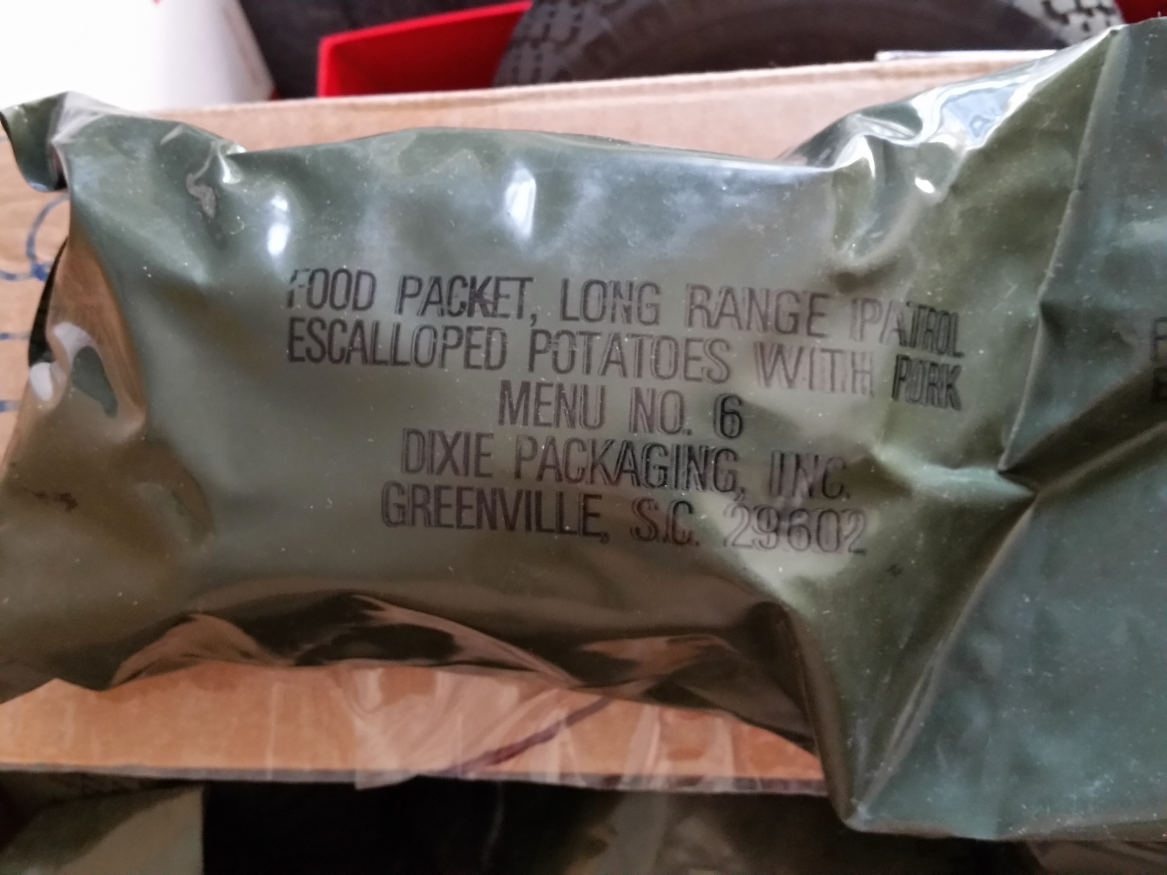 Drew78, I may be incorrect, but I always thought that the green bag LRRP's were from the 1970's vintage. The "cloth" type ones were the earlier version. Then in the 1980's came the brown bag LRRP's (which came 16 rations to a case IIRC).