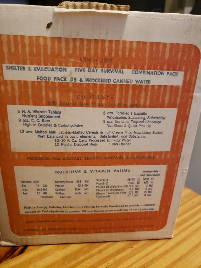 Re: 1961 ash-jon survival shelter ration