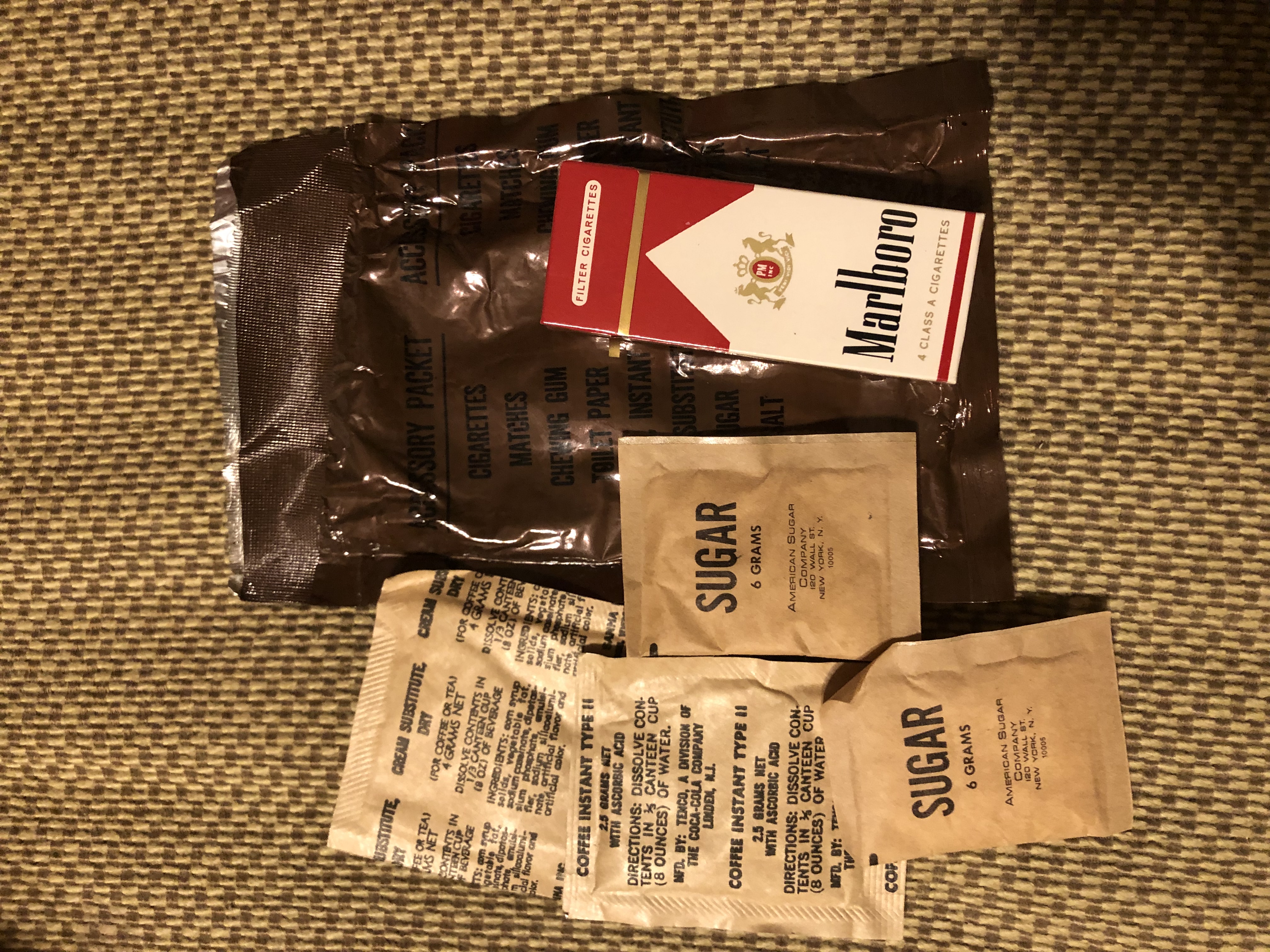 I have an opened c ration accessory pack with cigs for sale. The marlboros are still in their original cellophane. Surprisingly, when I originally opened it, the pack was missing a couple of the items listed on the front. Everything that was originally in it is included. 35.00 + shipping. I have way too many of these and need to thin the herd a bit