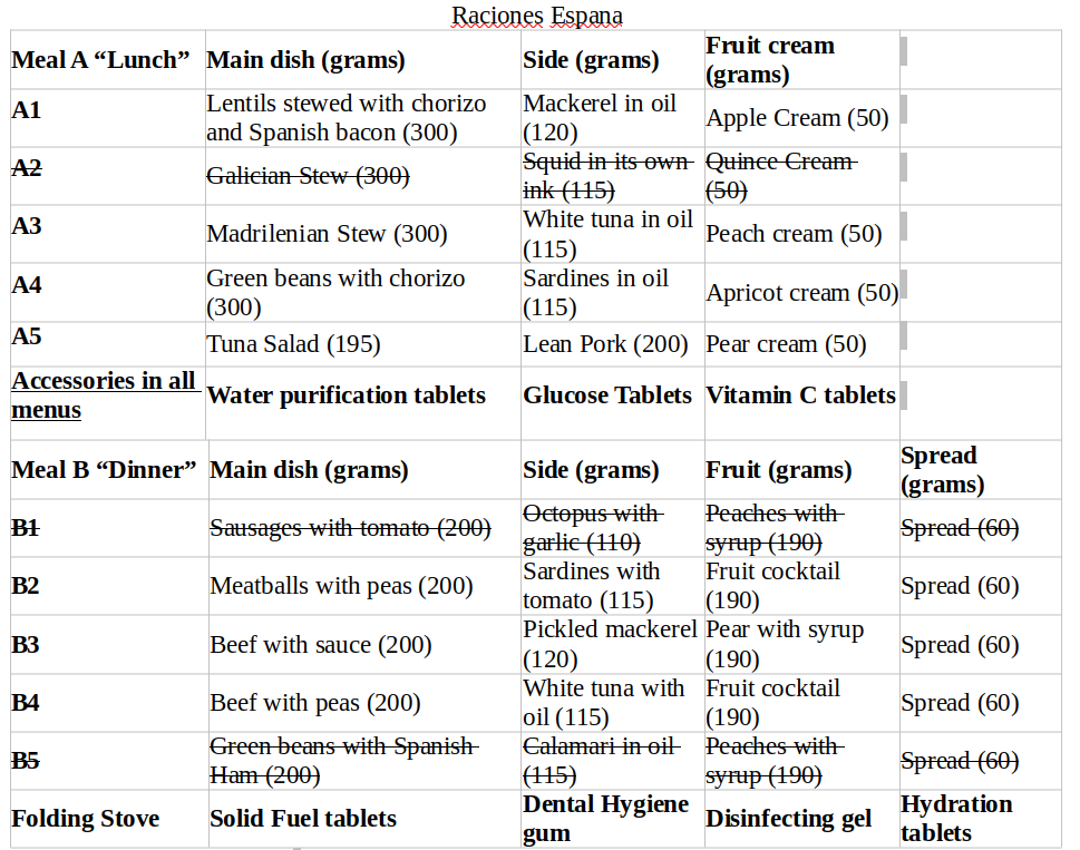 Re: Spain, Rations. Breakfast , Lunch & Dinner + crackers.
