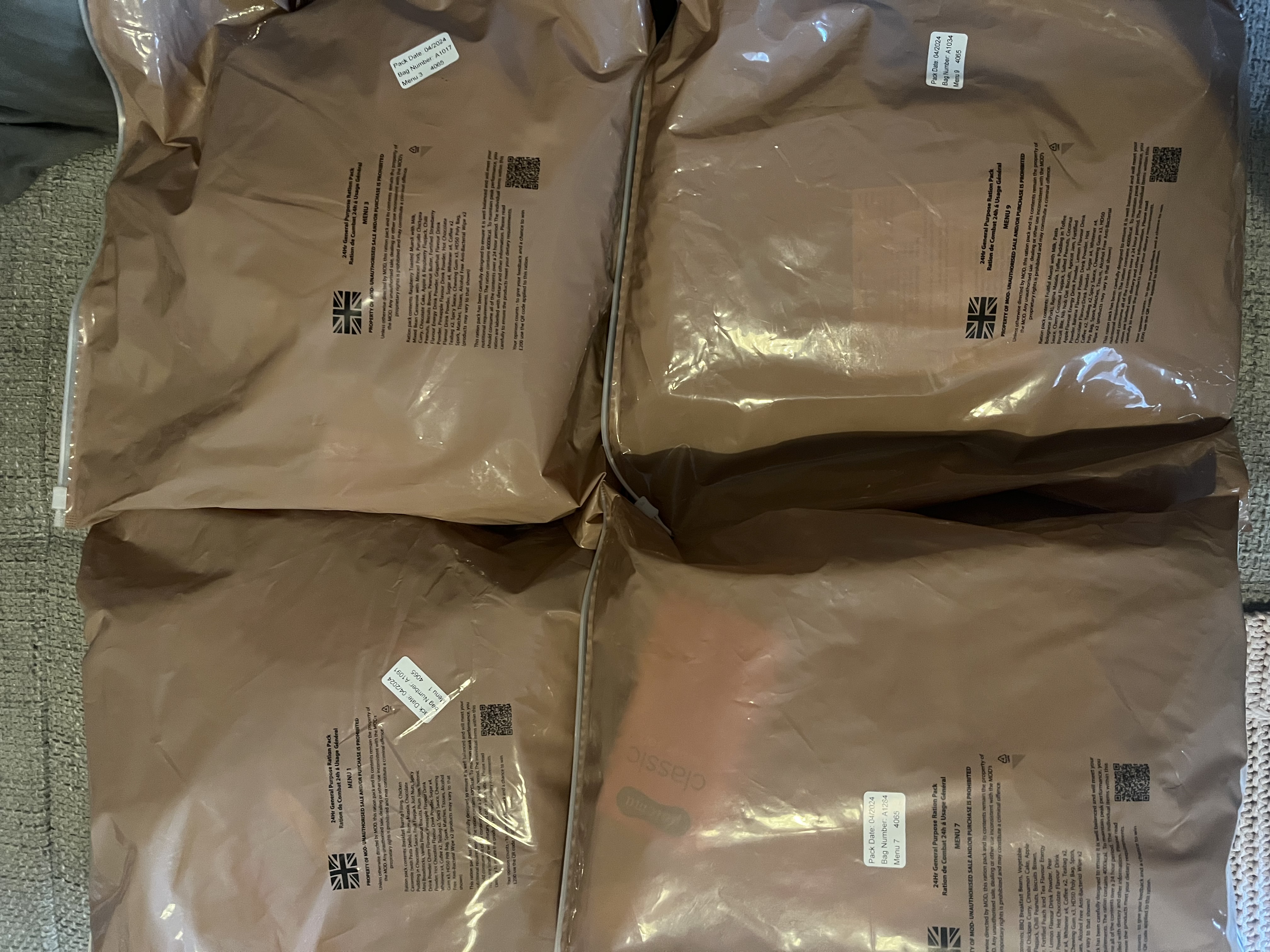 United Kingdom ORP (Boxed) and GP (Ziplock Bag) 24hr Rations.