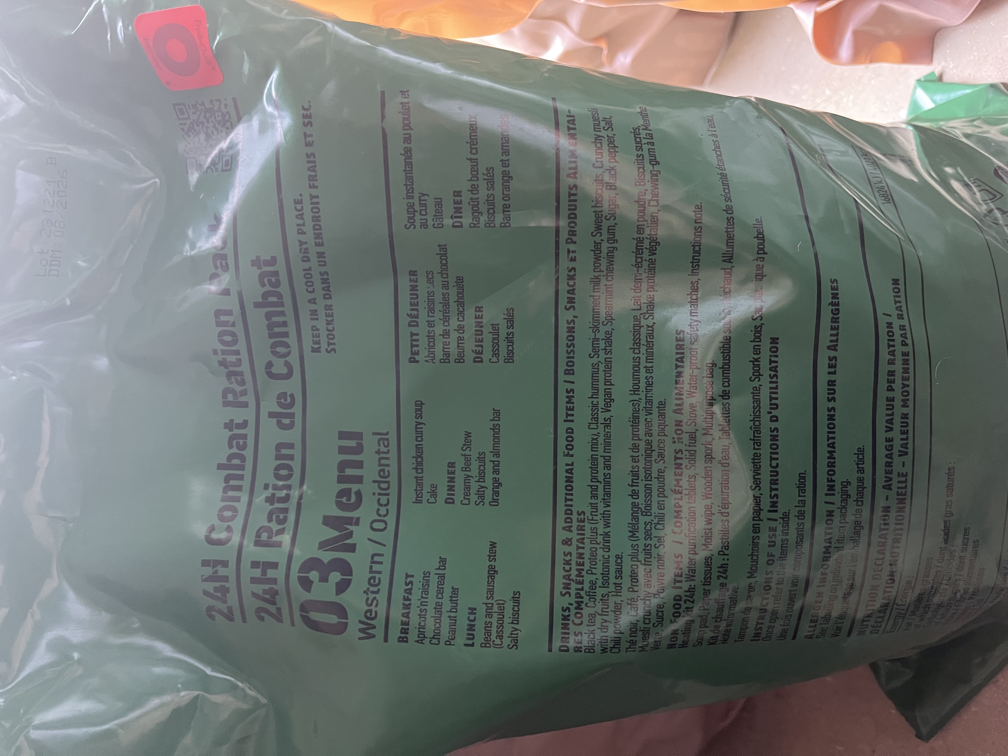 I‘m offering a few International 24h Rations and MREs.