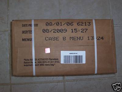 And one last thing...I have seen cases of MREs marked "Flameless Ration Heaters not included" on the outside of the case. When I first saw this guy's auction, I wondered if he was selling one of those or if he had opened the case.