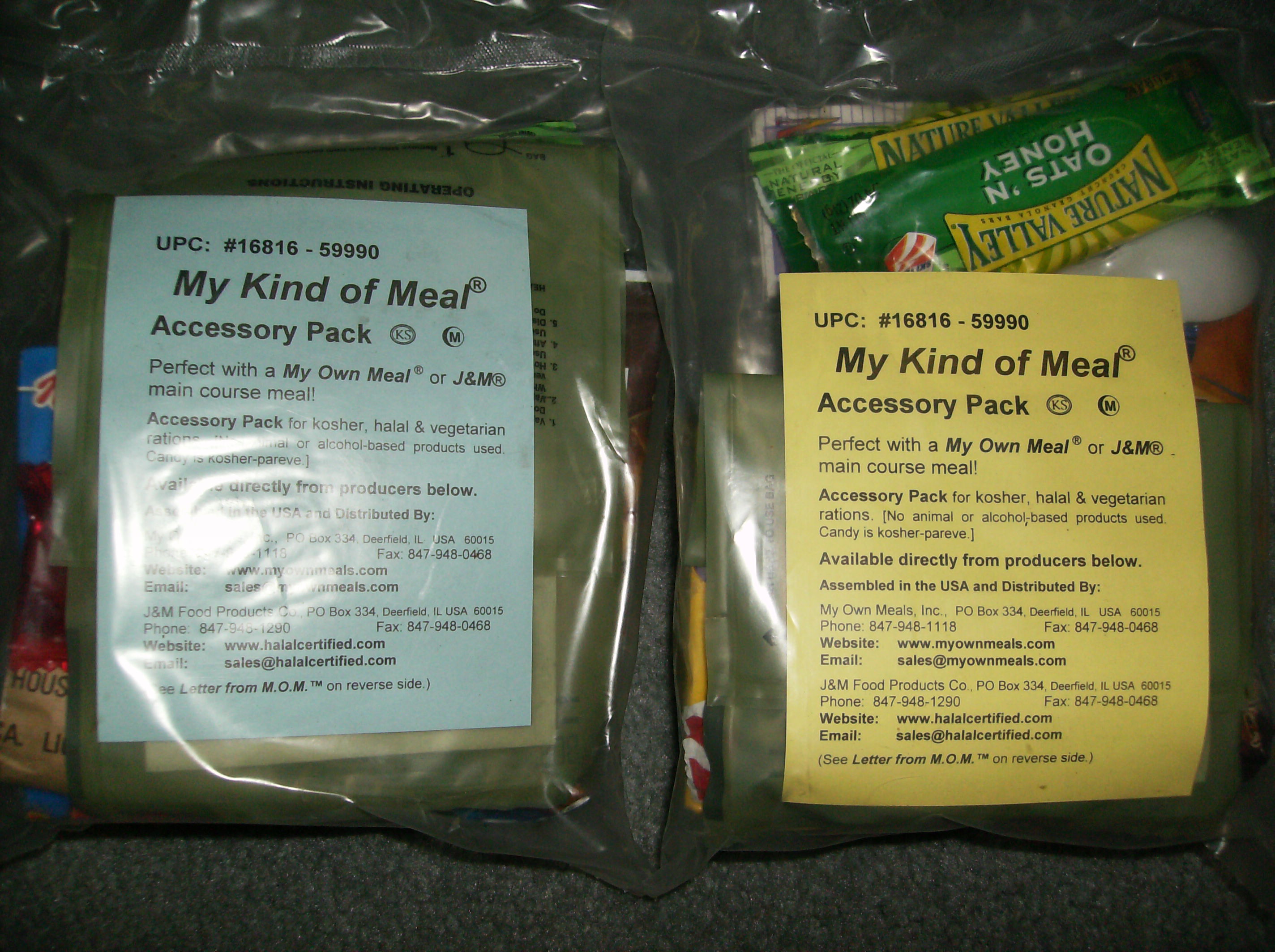 Remember I did a whole work up on the Halal meals including accessory packs. Here's the link: viewtopic.php?t=1134&start=10&postdays= ... =kind+mealkman wrote:Those look pretty cool. I've seen plenty of the main meal part of the Kosher/Halal rations but this is the first time I've seen the accessory packs for them. Good find!
